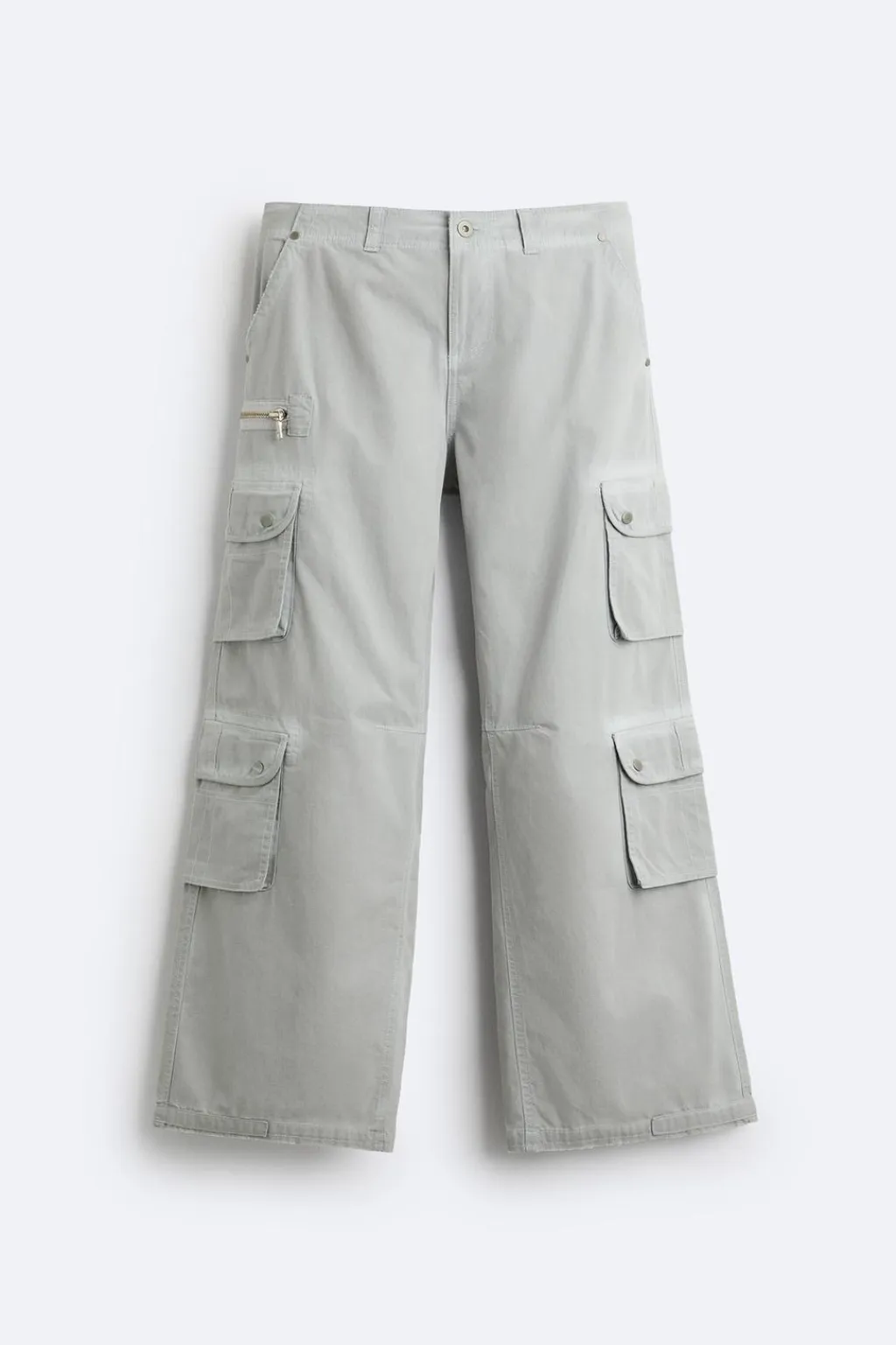 Pantalón relaxed fit. Bolsillos frontales y detalle de bolsillos traseros. Aplicación de bolsillos multifunción en perneras. Efecto lavado con acabado de color. Cierre frontal con cremallera y botón.