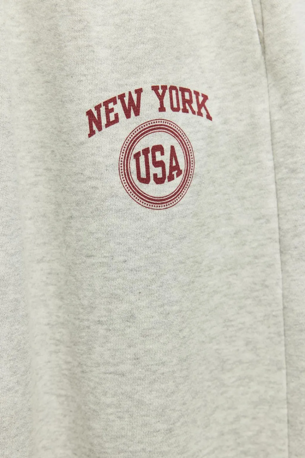 Pantalón de tiro medio con cintura elástica ajustable con cordones. Bolsillo de vivo en laterales. Detalle de texto combinado a contraste en delantero. Bajo acabado en puño elástico.