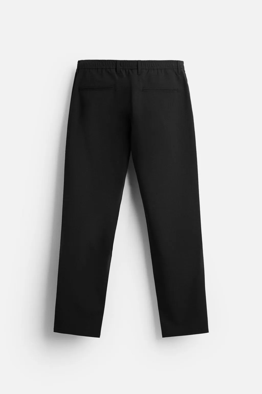 Pantalón confeccionada en tejido con alta elasticidad. Cintura elástica. Bolsillos frontales, y detalle de bolsillos de vivo en espalda. Cierre frontal con cremallera y botón.