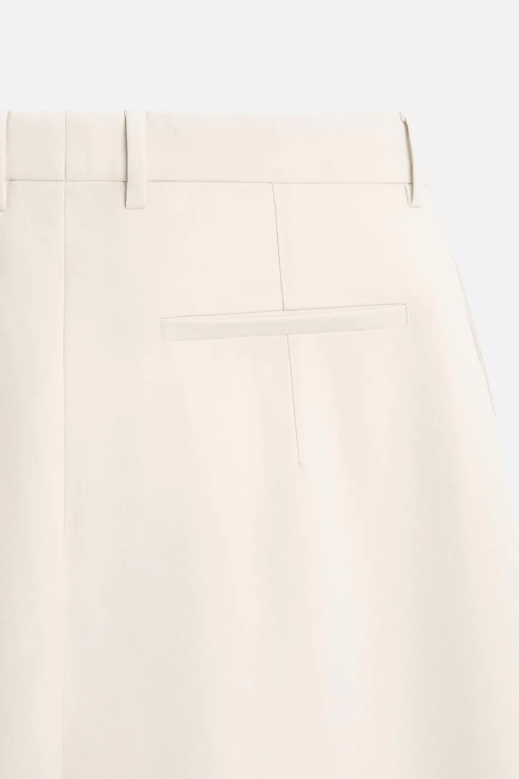 Pantalón wide fit. Cintura con detalle de pliegues frontales. Bolsillos laterales en cadera y traseros de vivo. Cierre frontal con cremallera y botón.