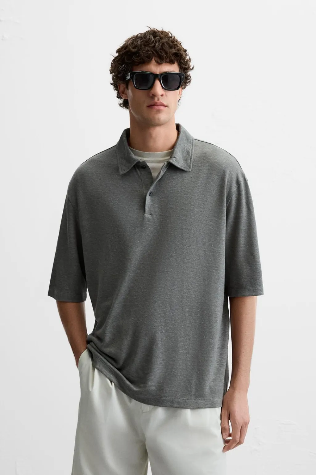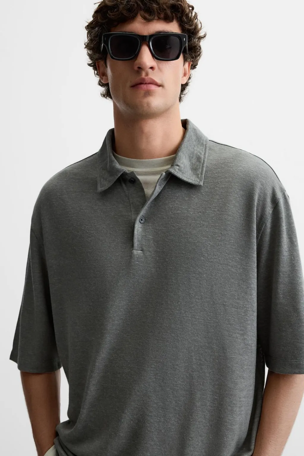 Polo regular fit confeccionado en tejido con mezcla de cáñamo y viscosa. Cuello solapa con cierre frontal de botonadura. Manga corta.
