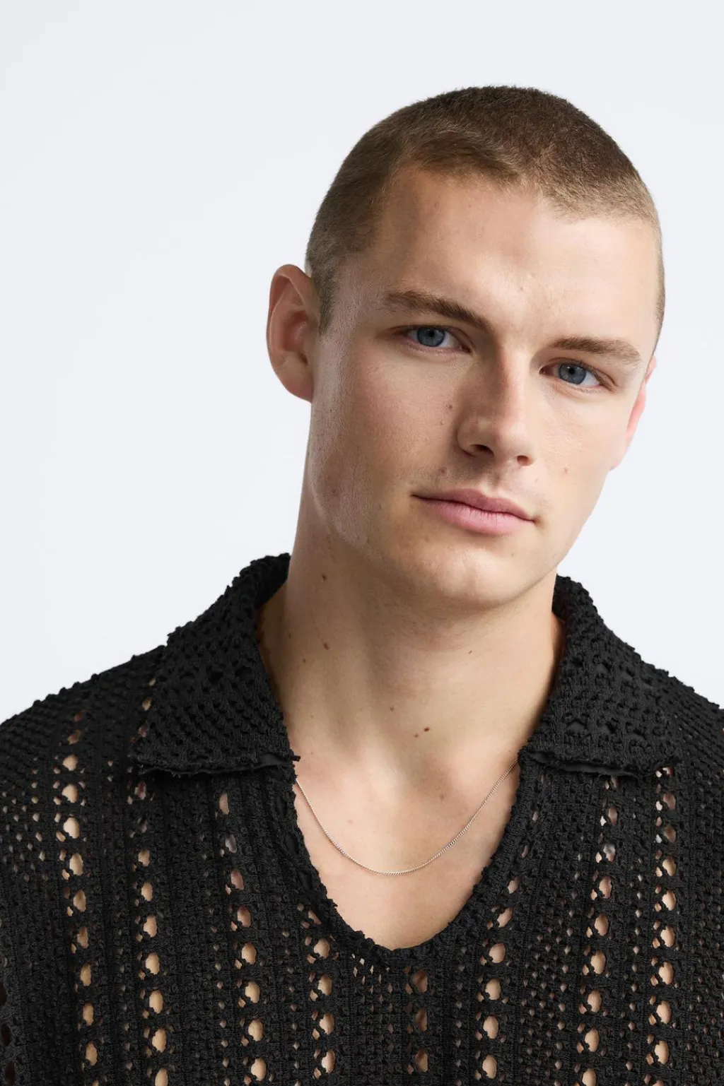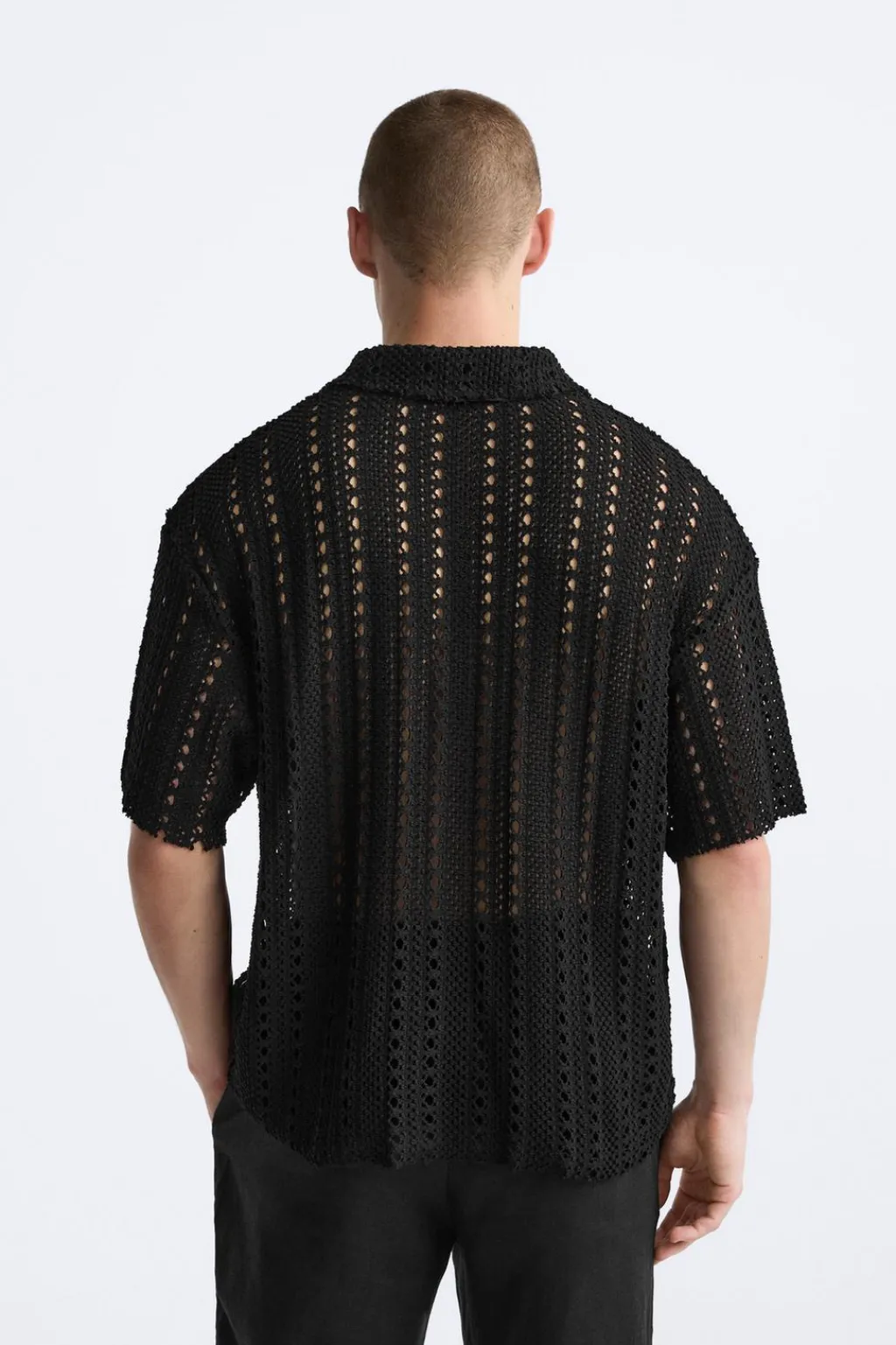 Polo de punto tejido con estructura abierta. Cuello solapa con abertura frontal y manga corta. Acabados en rib.