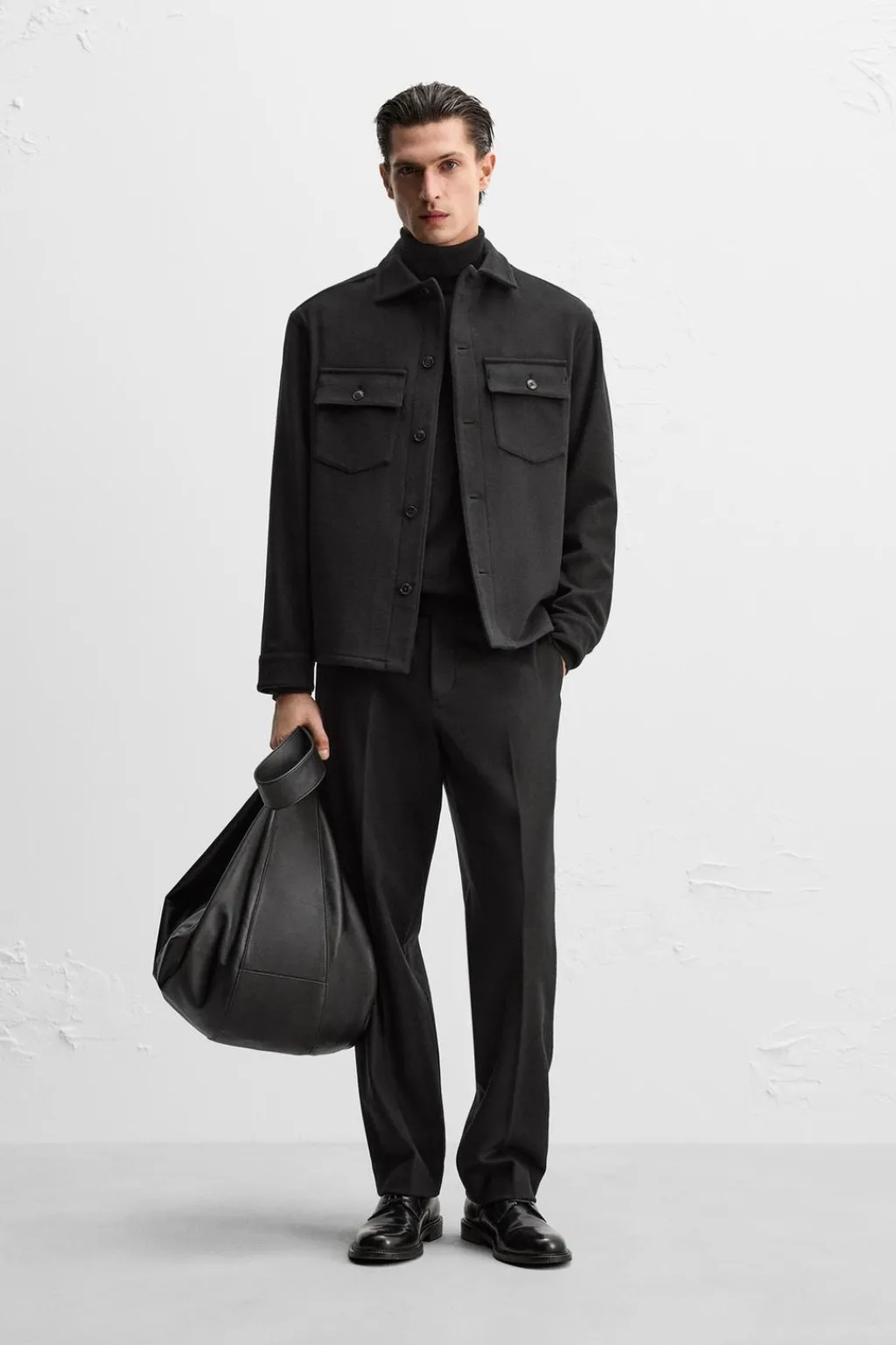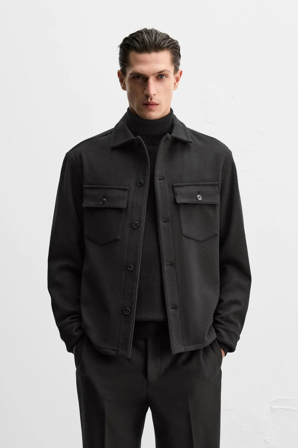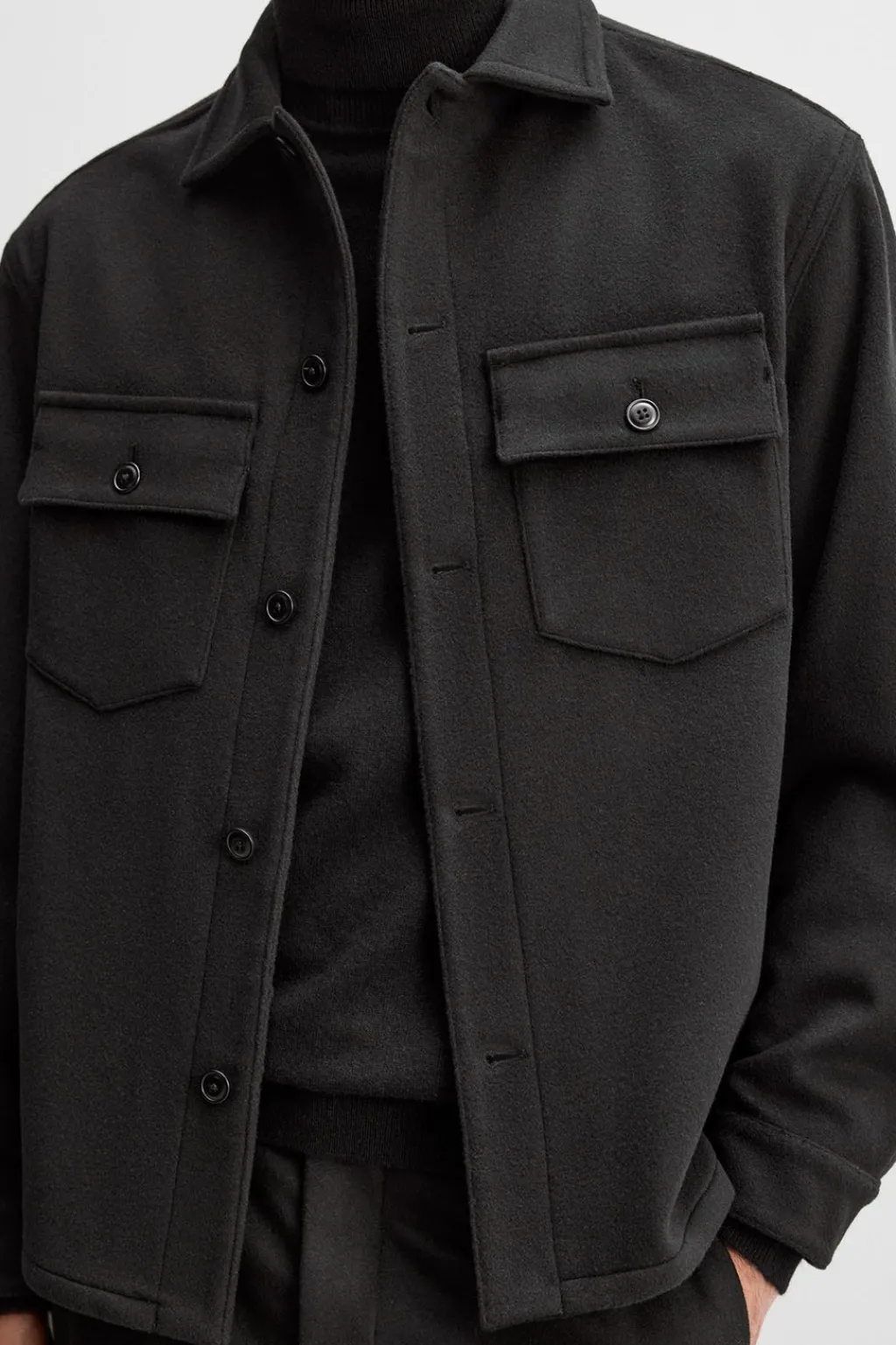 Sobrecamisa relaxed fit confeccionada en tejido de lana con origen italiano.