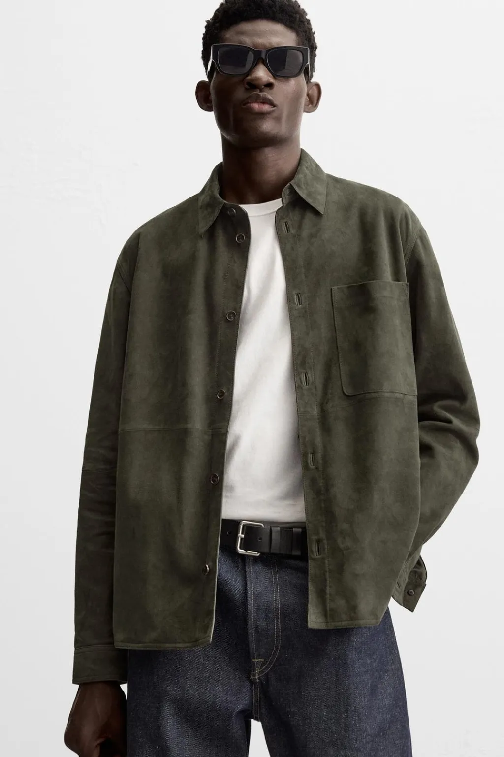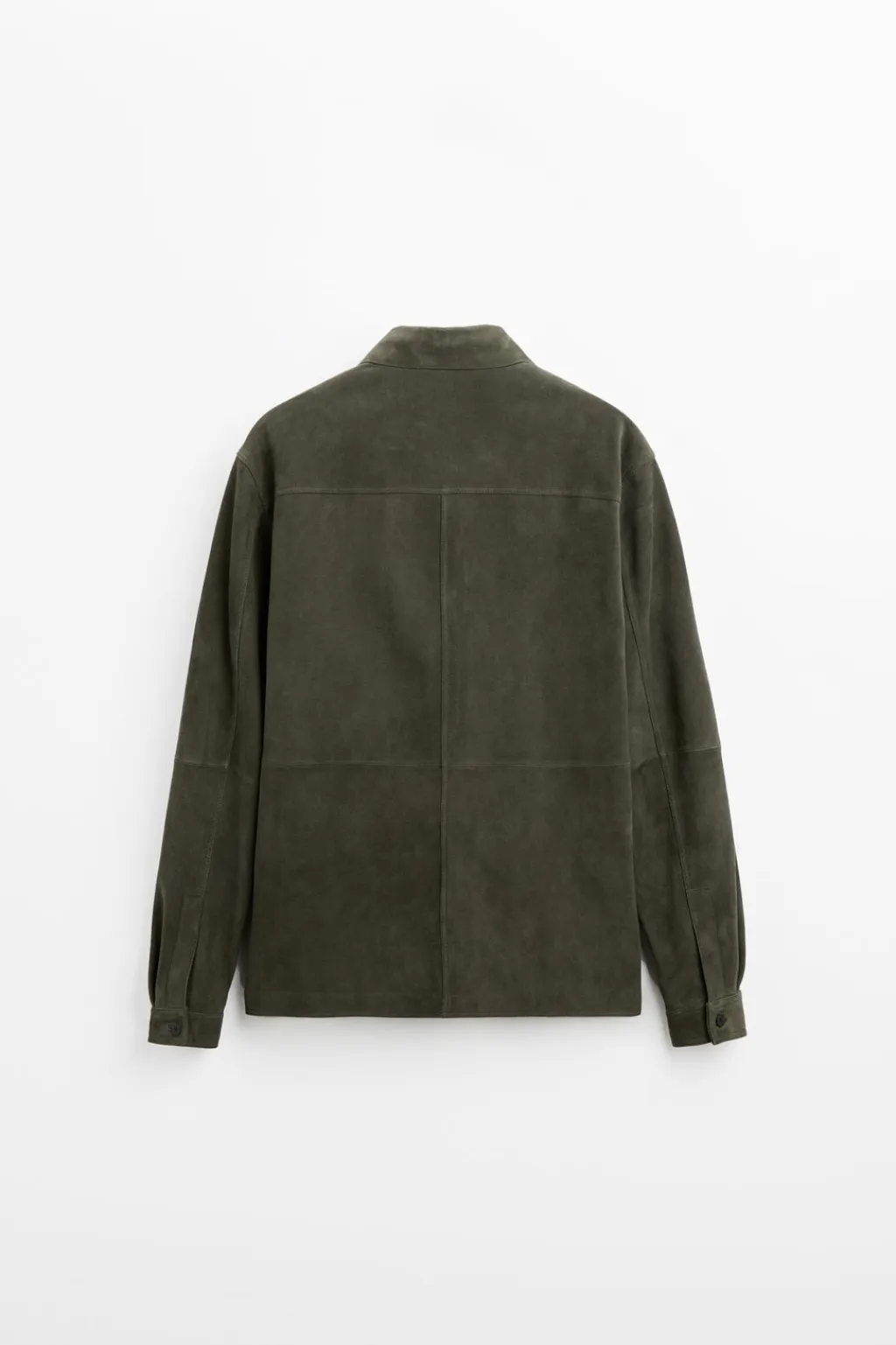 Sobrecamisa regular fit confeccionada en piel con acabado ante. Cuello solapa y manga larga acabda en puño con botón. Bolsillo plastrón en pecho. Cierre frontal de botonadura.