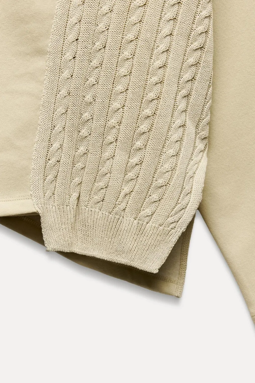 Sudadera de cuello redondo y manga larga. Detalle de aplicación de tejido en tricot a tono. Bajo asimétrico.