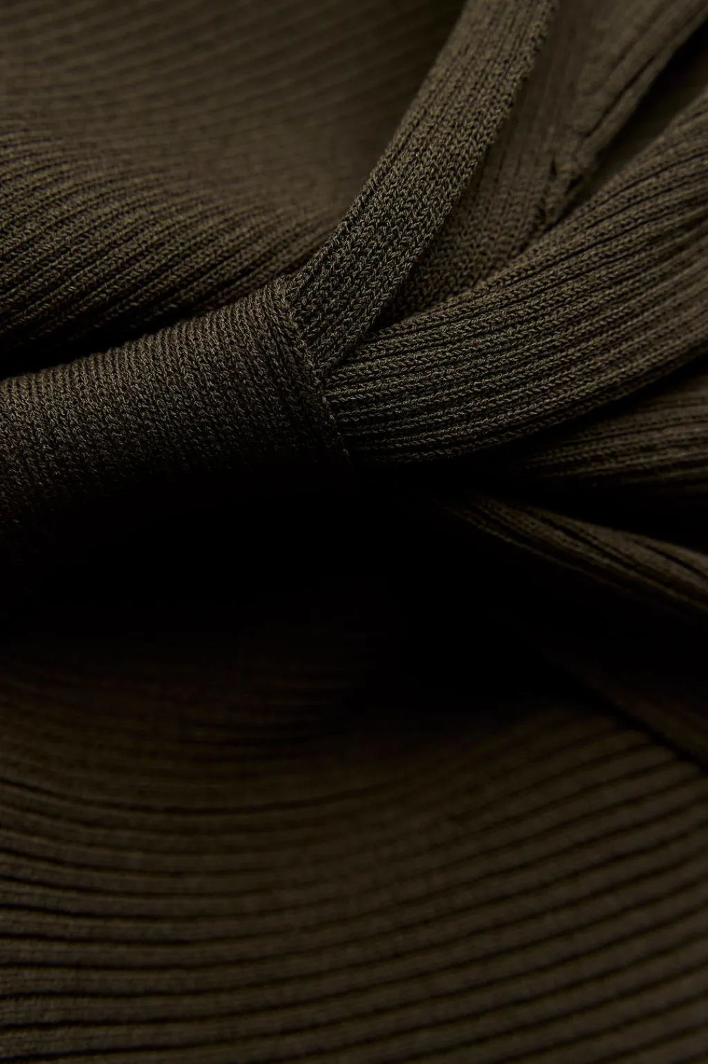 Top de punto canalé con tirante ancho asimétrico y nudo delantero.