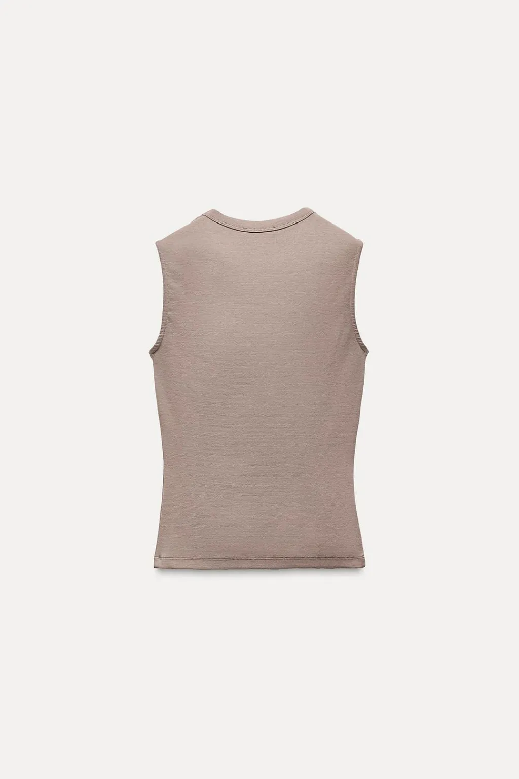 Top de cuello redondo y manga sisa. Detalle de etiqueta en delantero a tono.