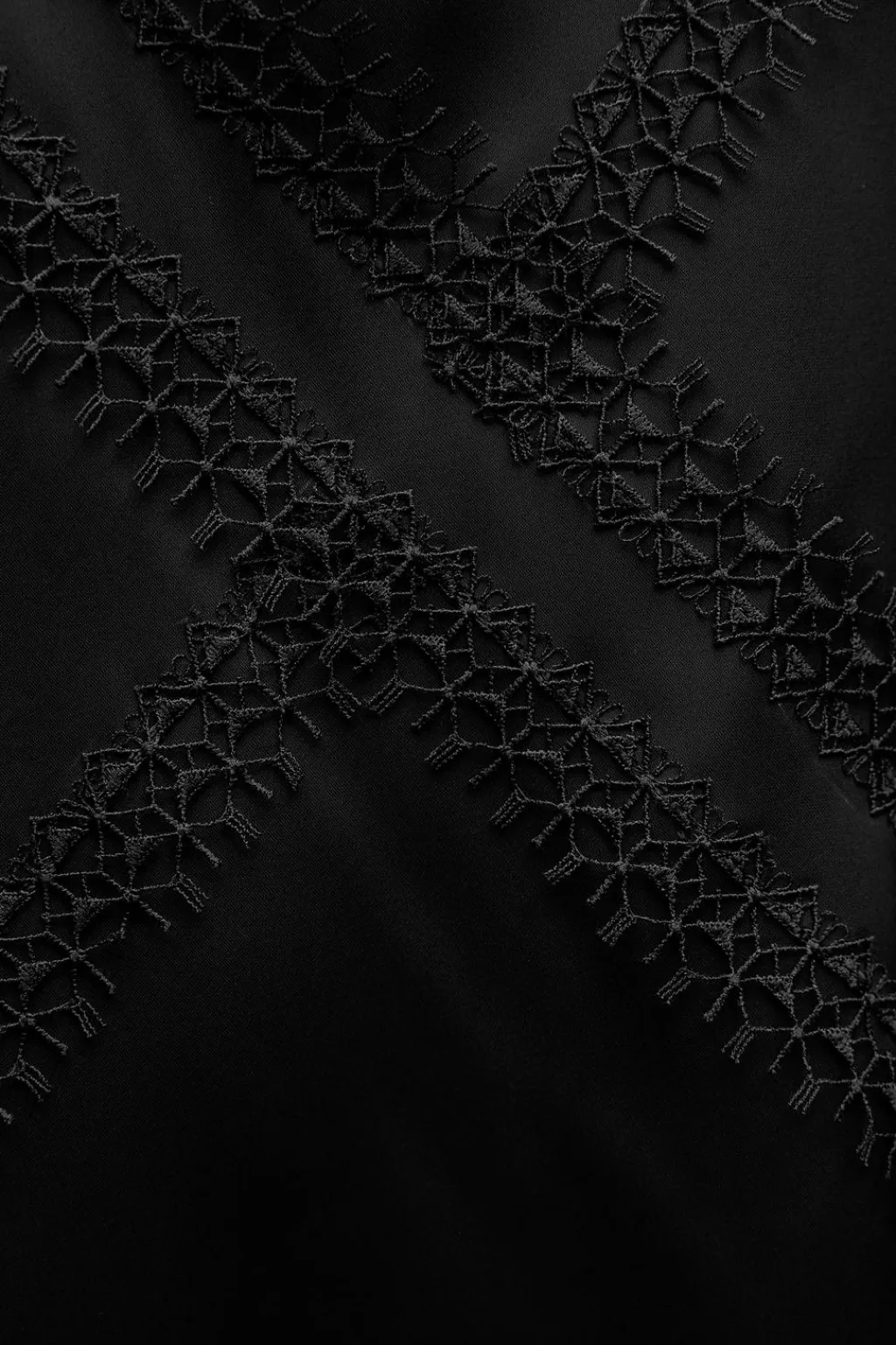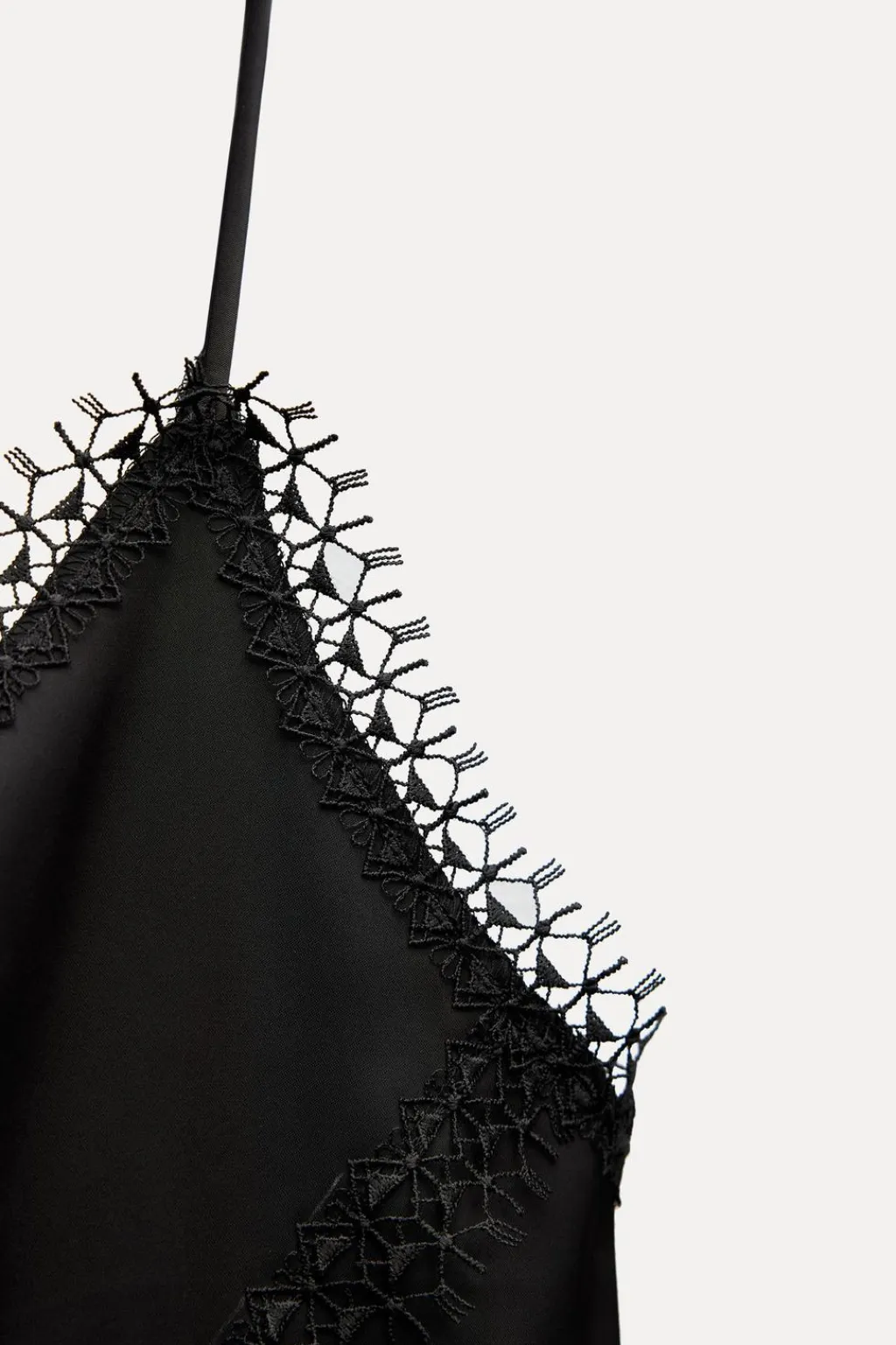 Top de escote pico y tirantes finos ajustables. Detalle de aplicación de encaje a tono.
