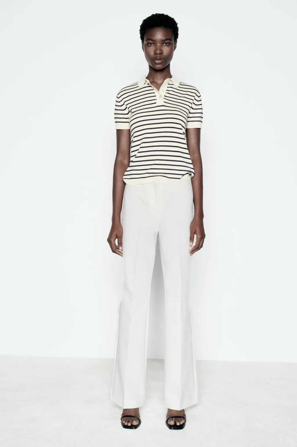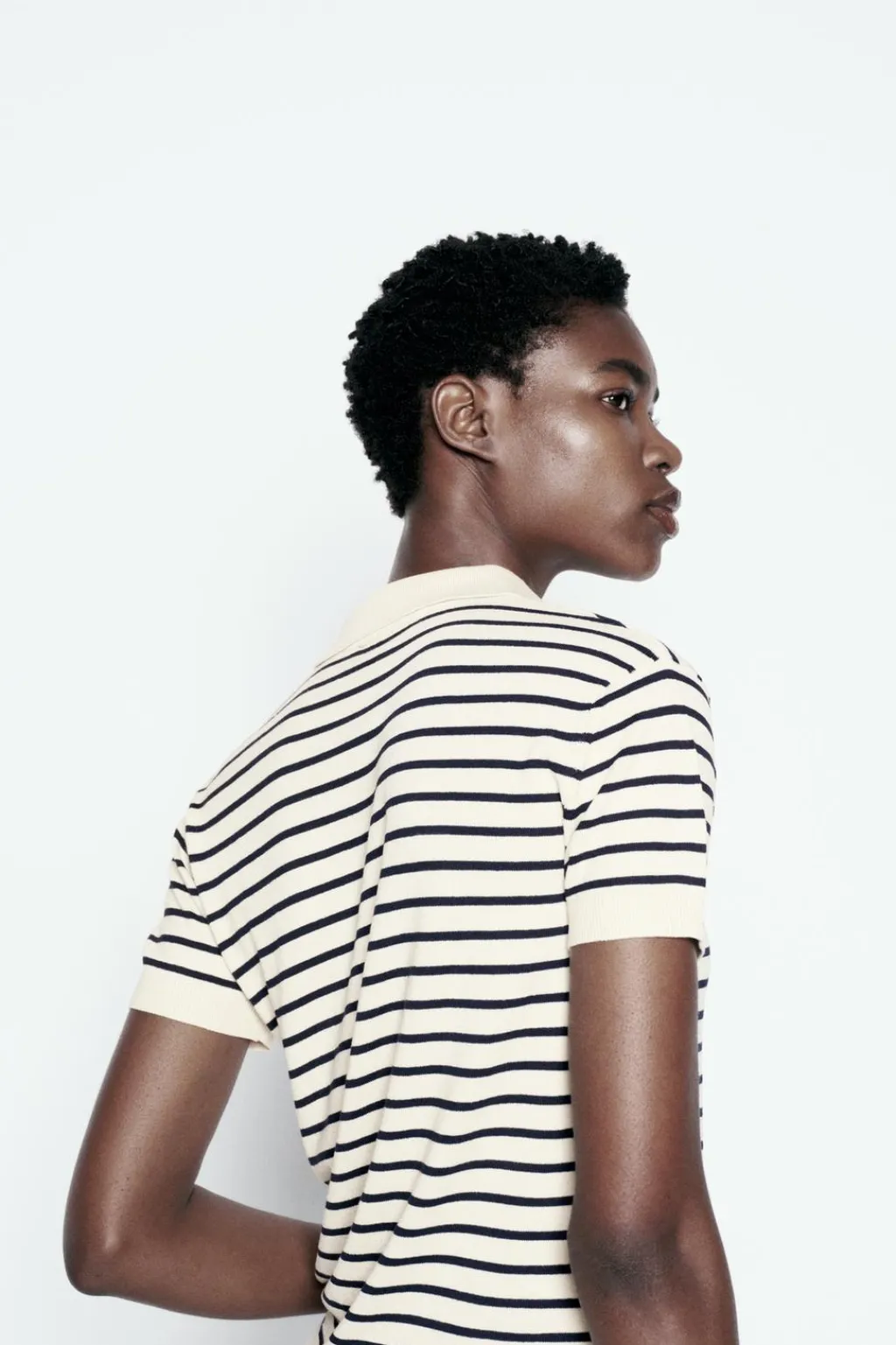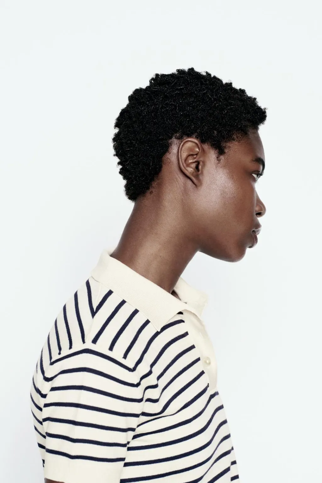 Top estilo polo de cuello solapa y manga corta. Botones delanteros. Acabados en rib.