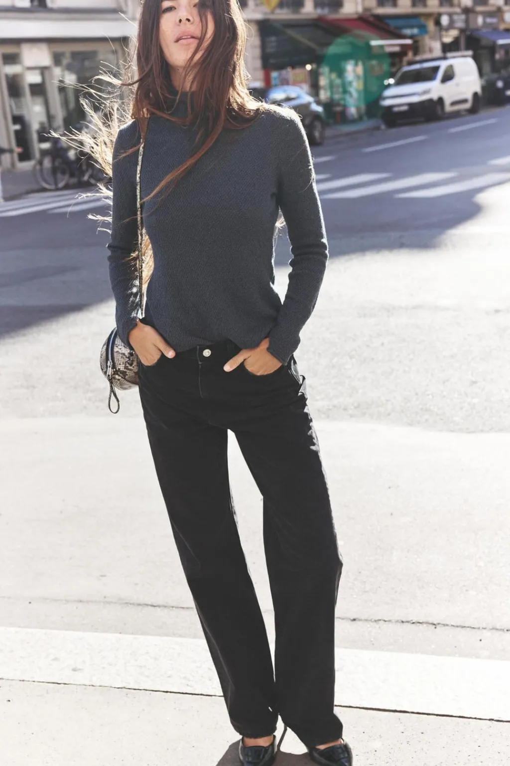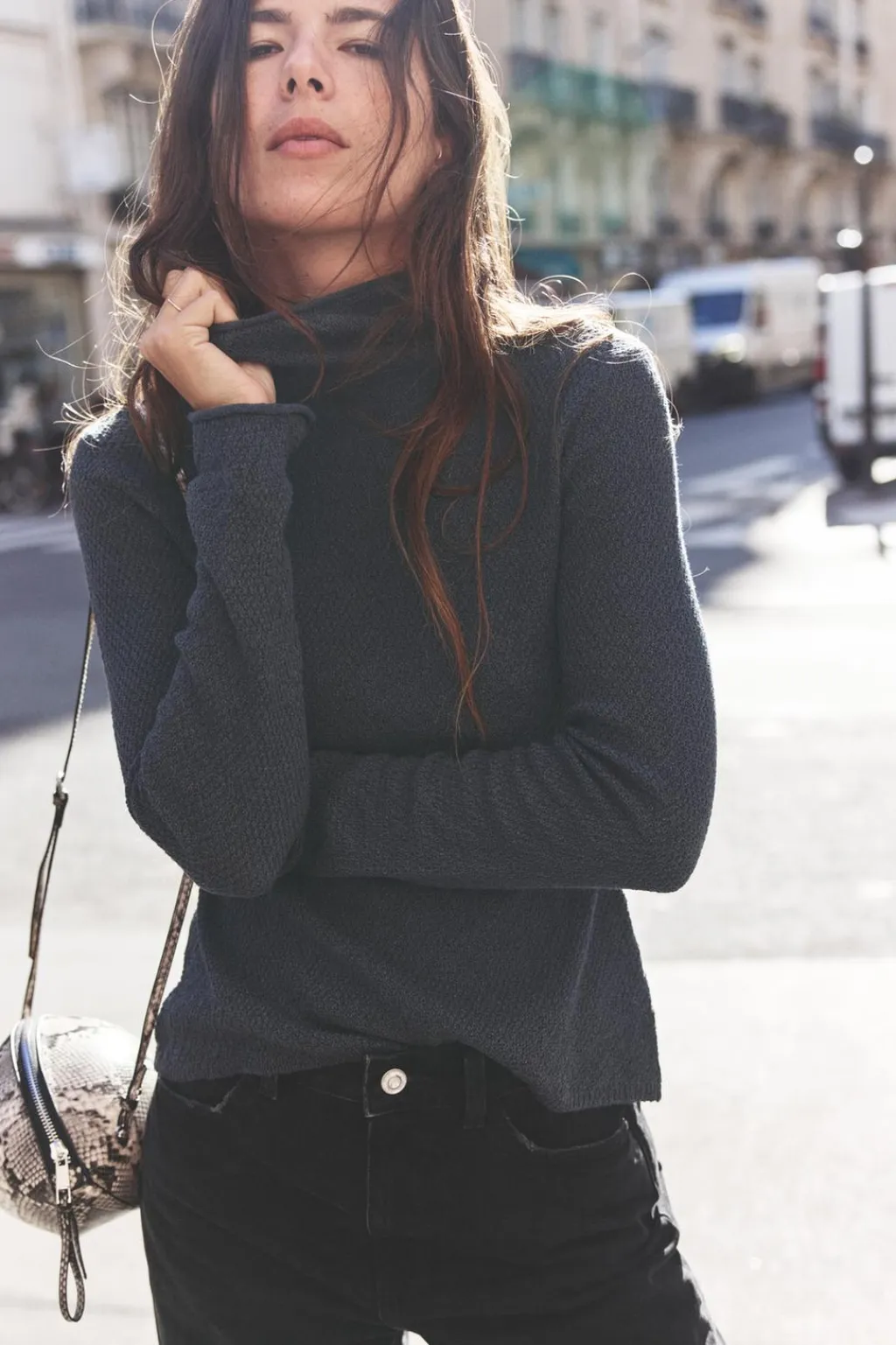 Top de cuello subido y manga larga. Detalle de tejido con textura.
