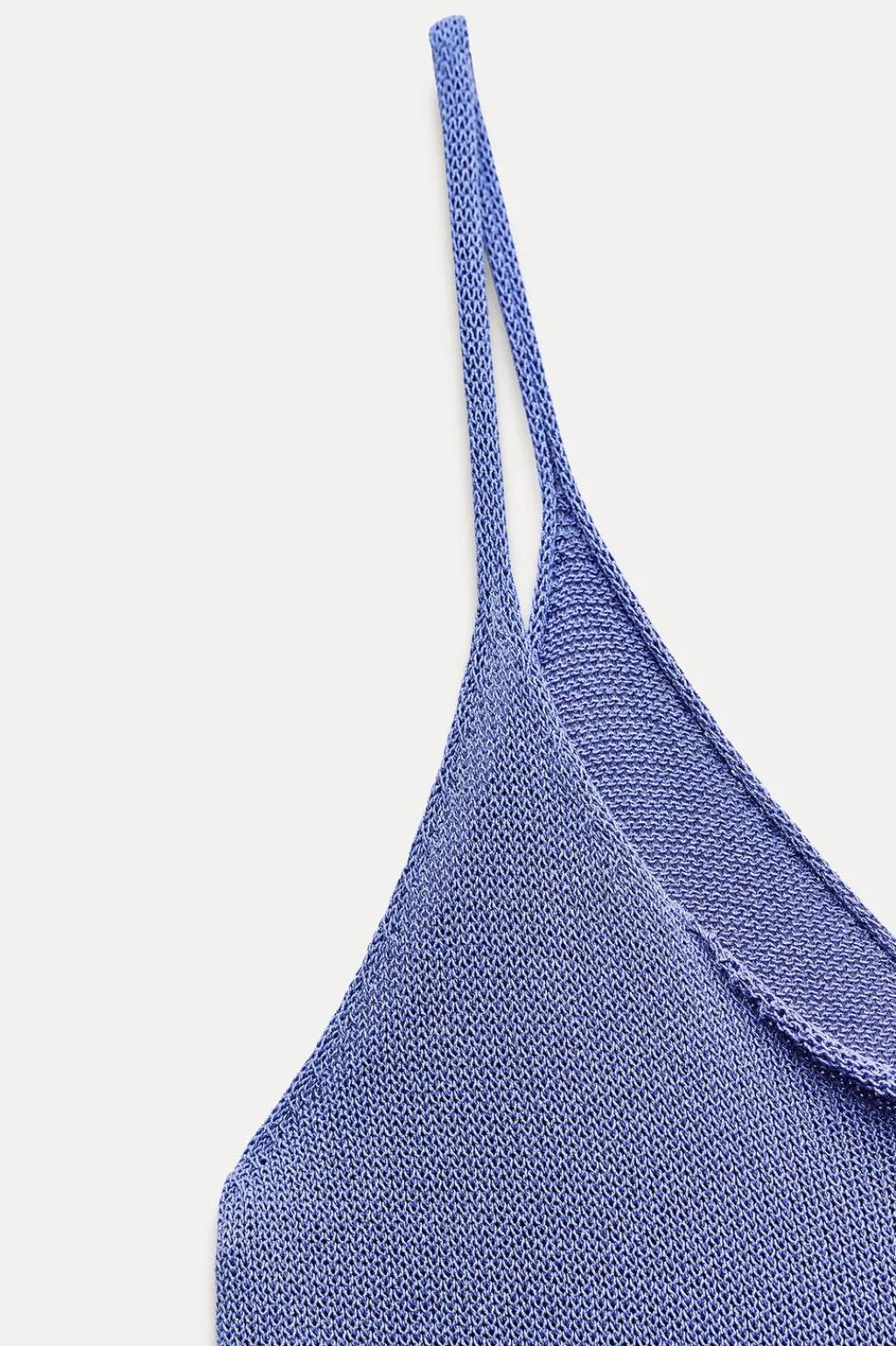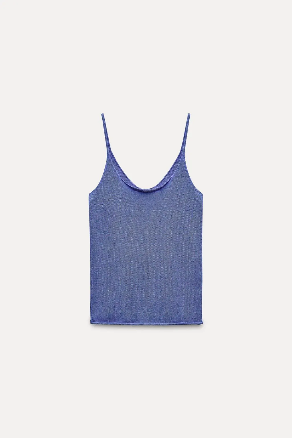 Top de escote pico y tirantes finos. Bajo acabado en vuelta.