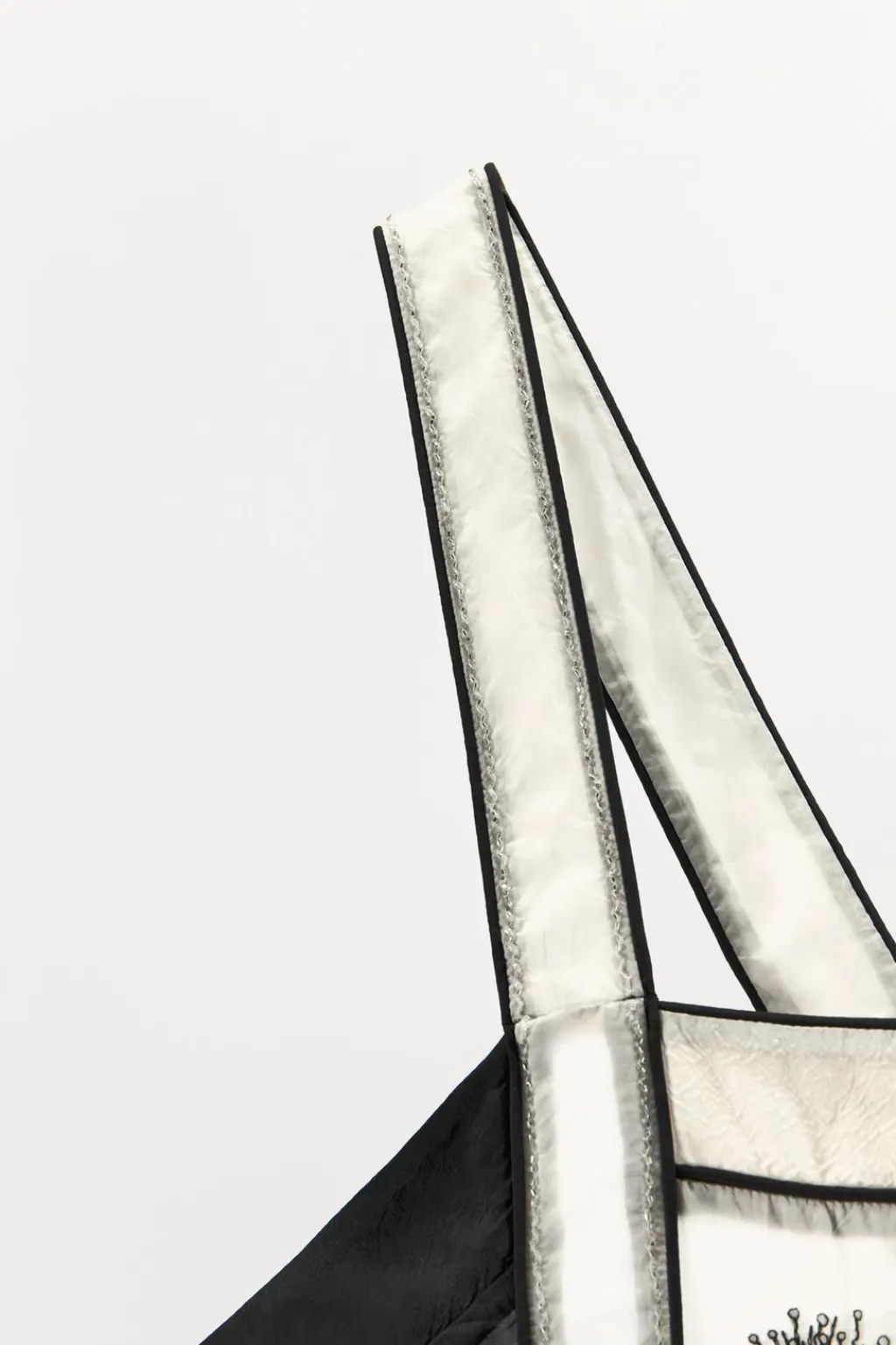 Vestido midi de escote recto y tirantes anchos. Detalle de bordados florales con aplicación de abalorios combinados a contraste.