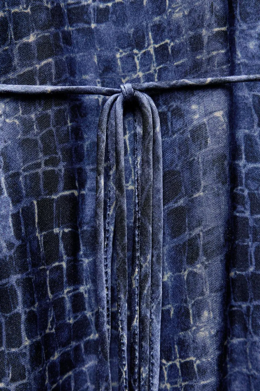 Vestido corto confeccionado en hilatura de viscosa. Escote pico con volantes y lazadas. Manga larga acabada en elástico y volante. Cinturón en mismo tejido.