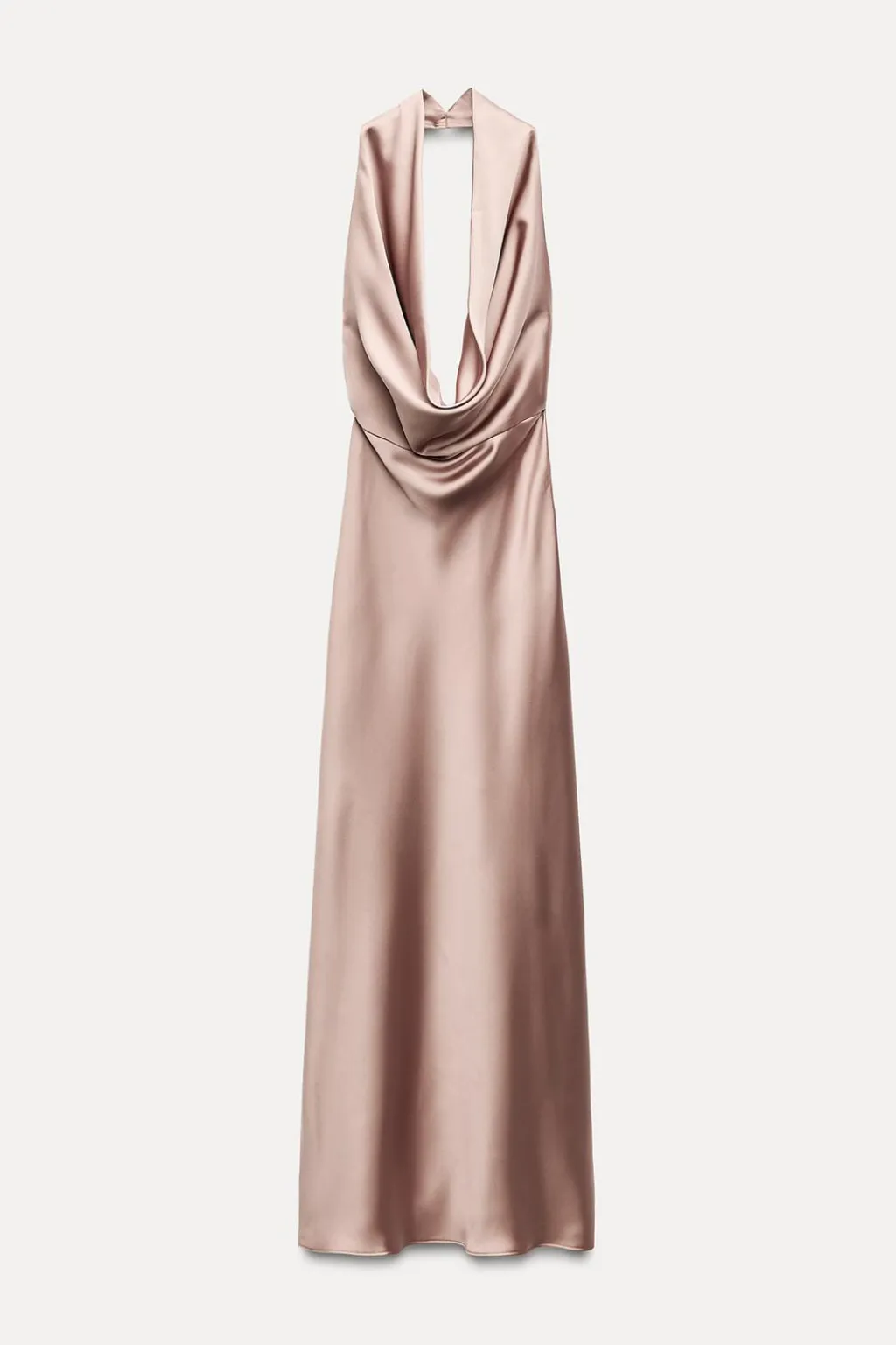 Vestido midi de cuello halter con escote drapeado y pronunciado. Espalda descubierta.