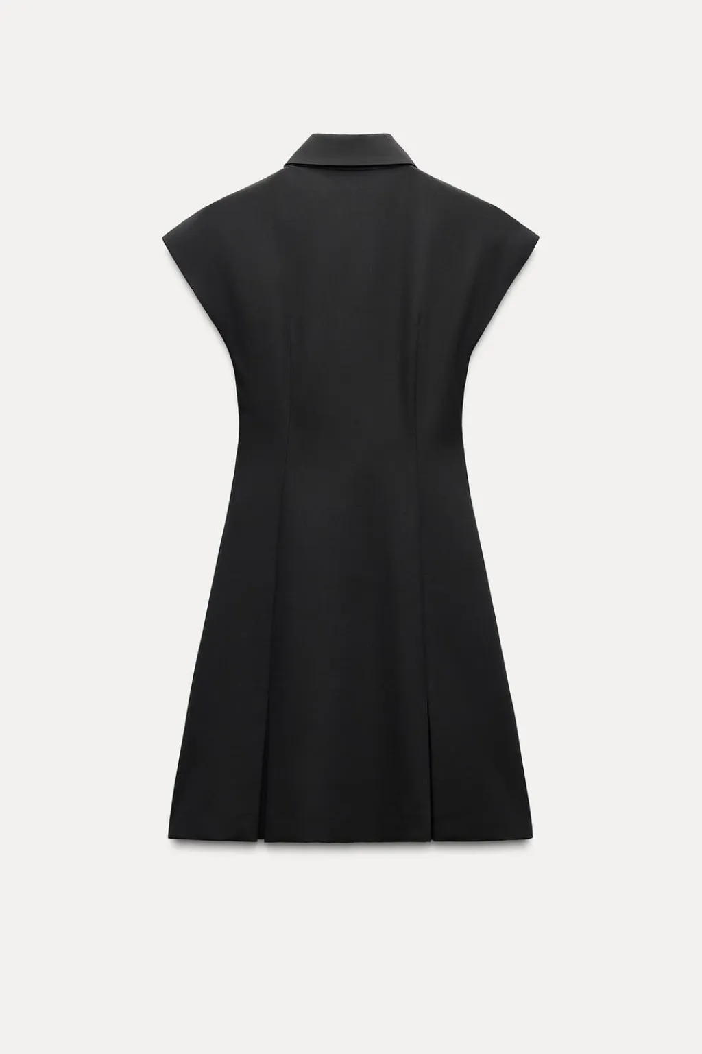 Vestido de cuello solapa y manga sisa. Bajo acabado con pinzas en delantero y espalda. Cierre frontal con cremallera metálica.