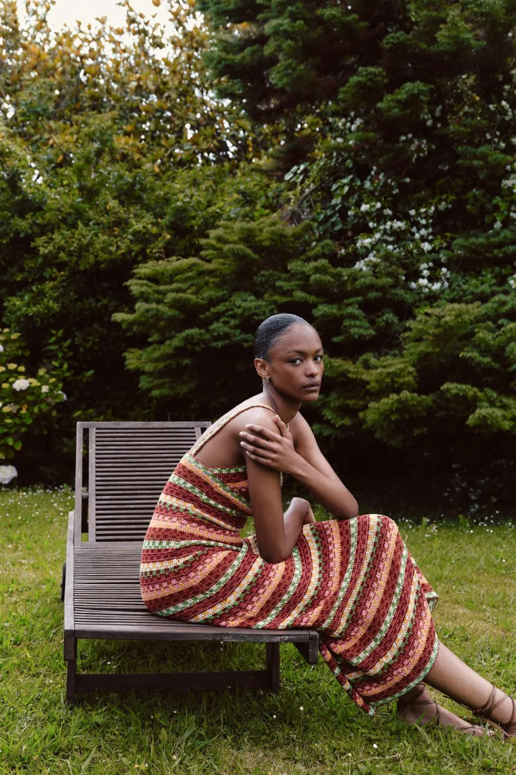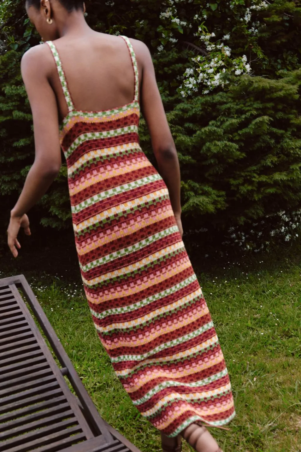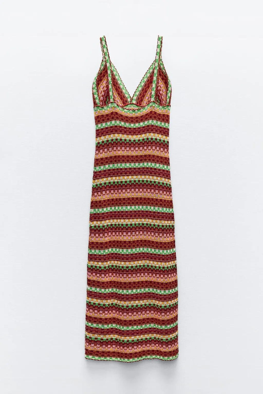 Vestido midi de escote pico y tirantes finos.
