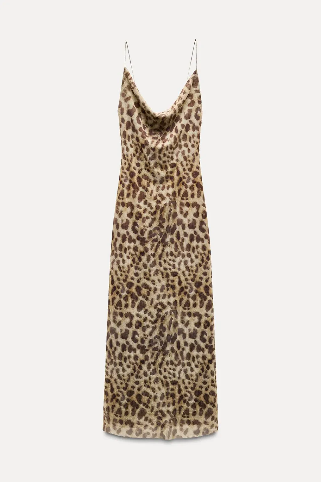 Vestido largo de escote drapeado y tirantes finos. Forro interior combinado.