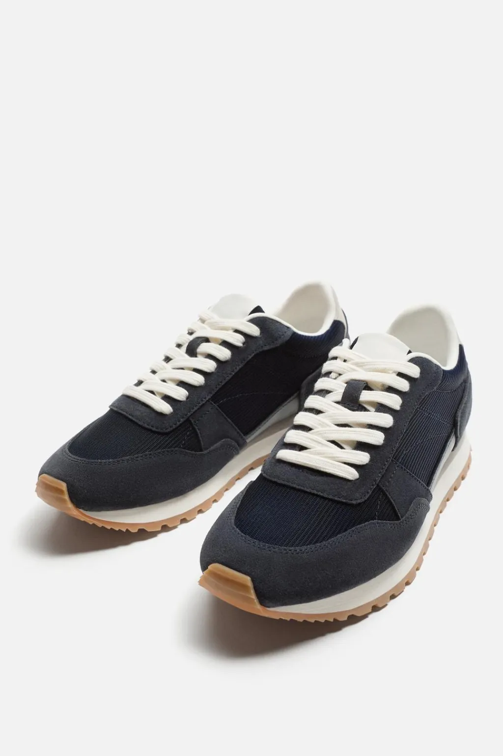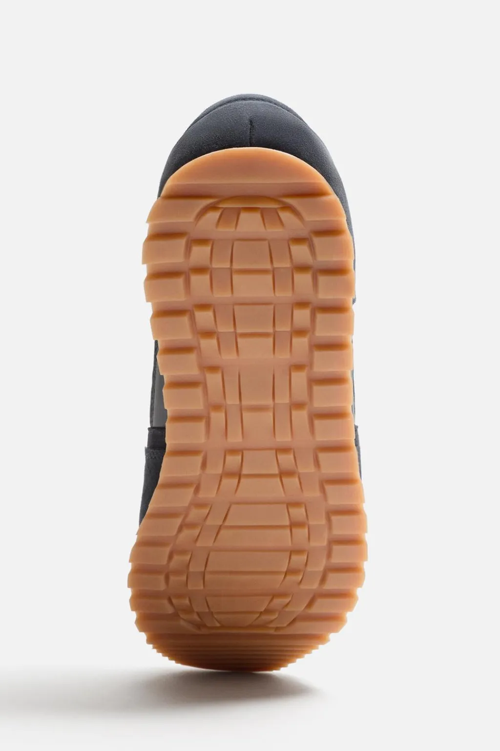 Zapatilla deportiva estilo retro. Parte superior fabricada en combinación de piezas con detalles en piel con acabado serraje. Piso con suela dentada.