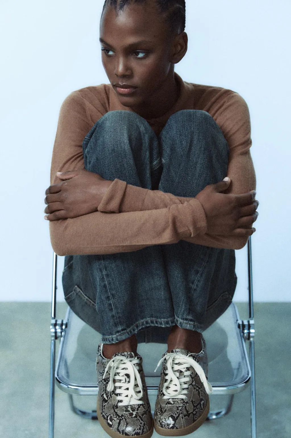 Zapatillas deportivas tipo bamba. Estampado animal. Suela en contraste. Cierre mediante cordones.