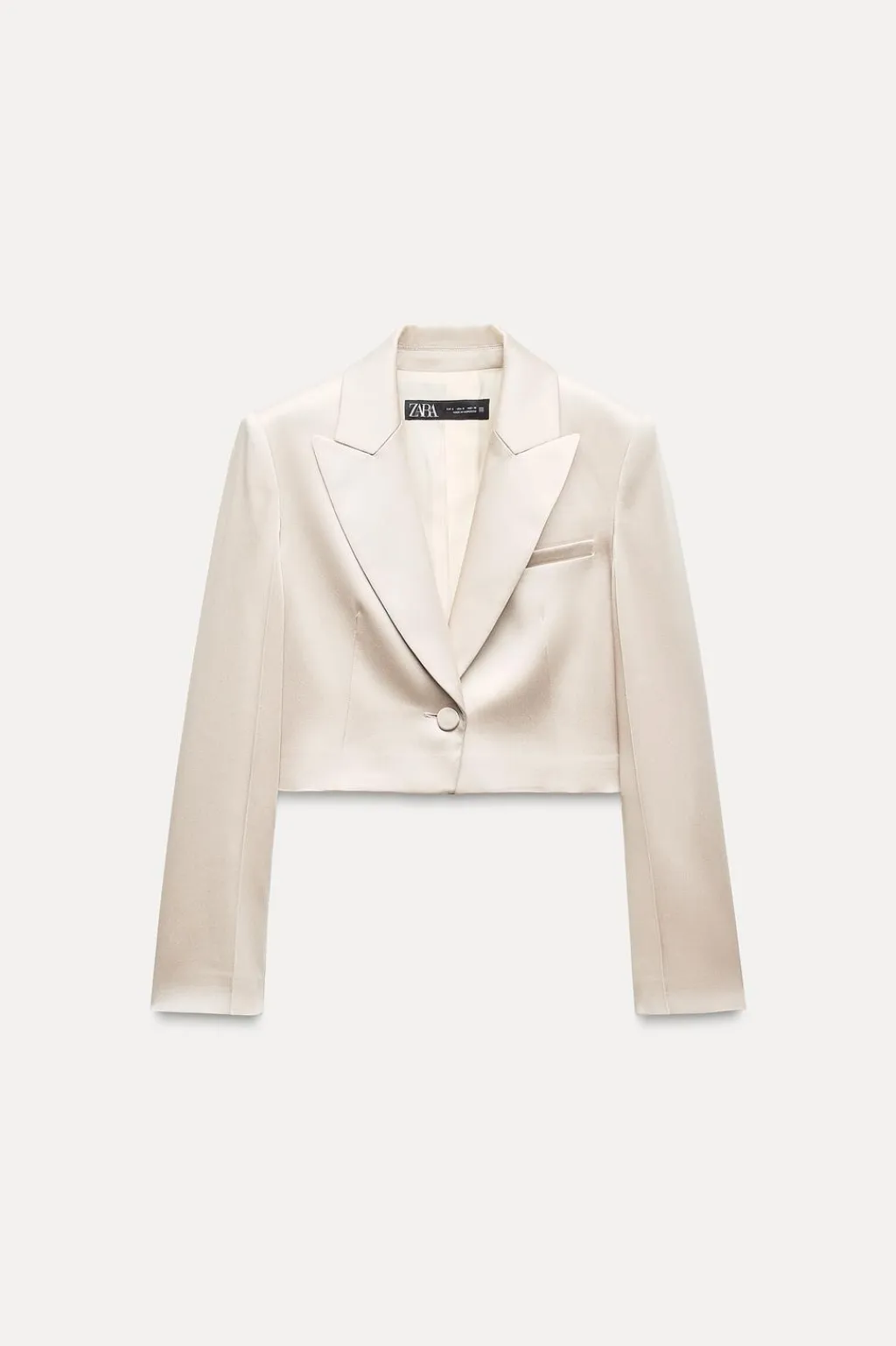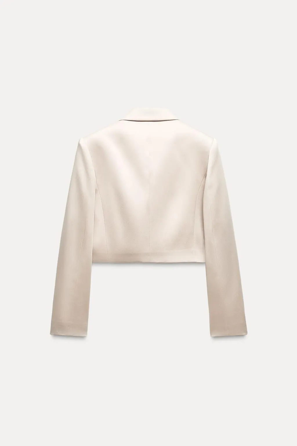 Blazer crop confeccionada en tejido satinado. Cuello solapa y manga larga con hombreras.Forro interior combinado. Cierre frontal con botón forrado.