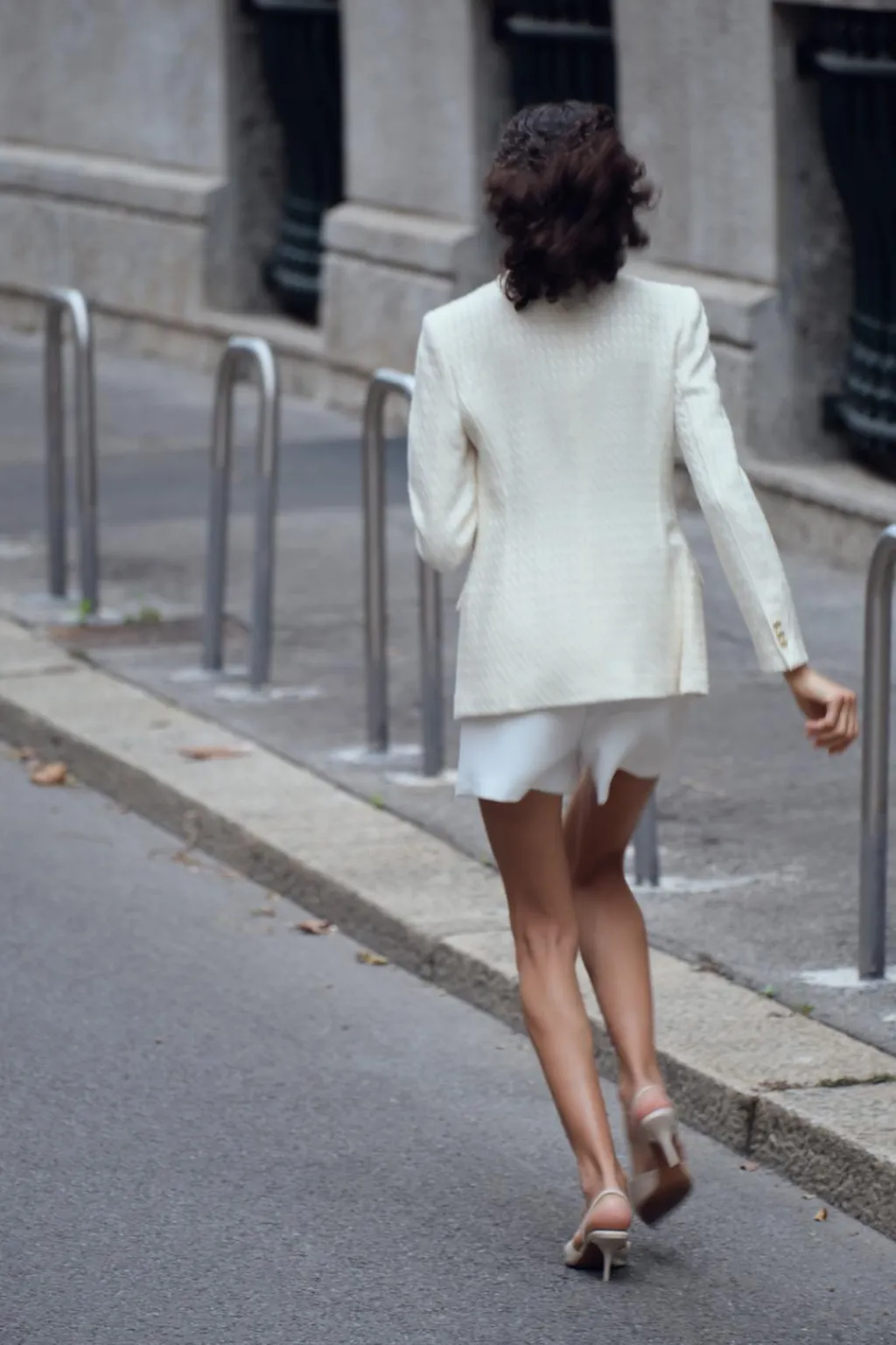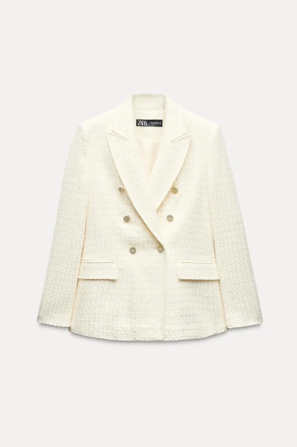 Blazer de cuello solapa y manga larga con hombreras. Bolsillos delanteros con solapa. Cierre frontal cruzado con botones.