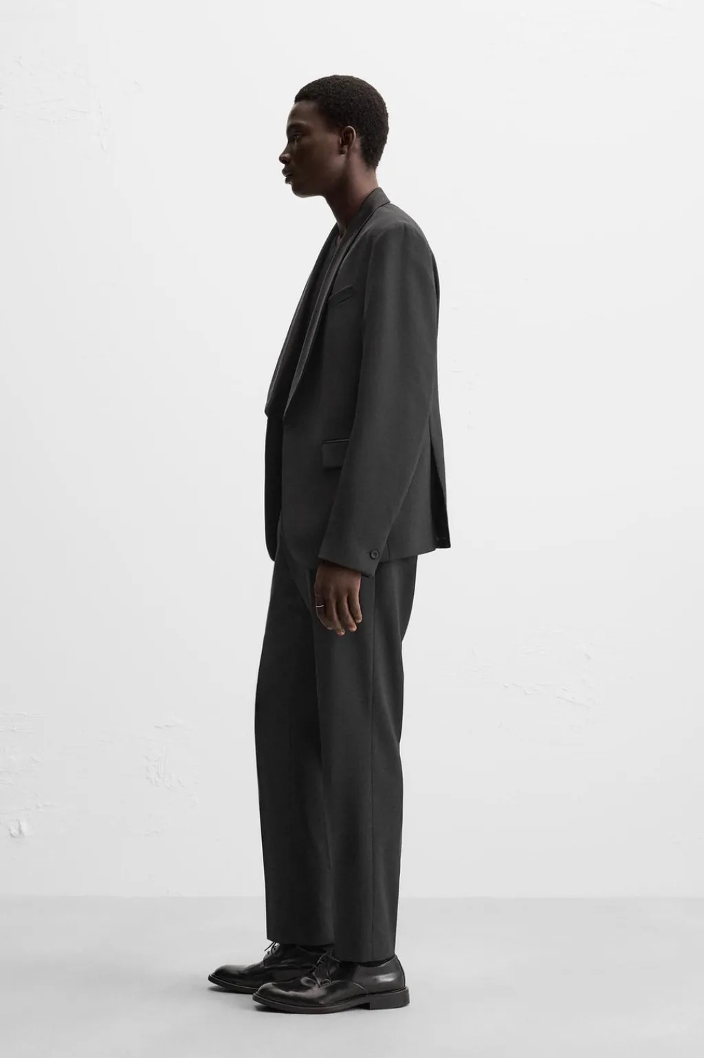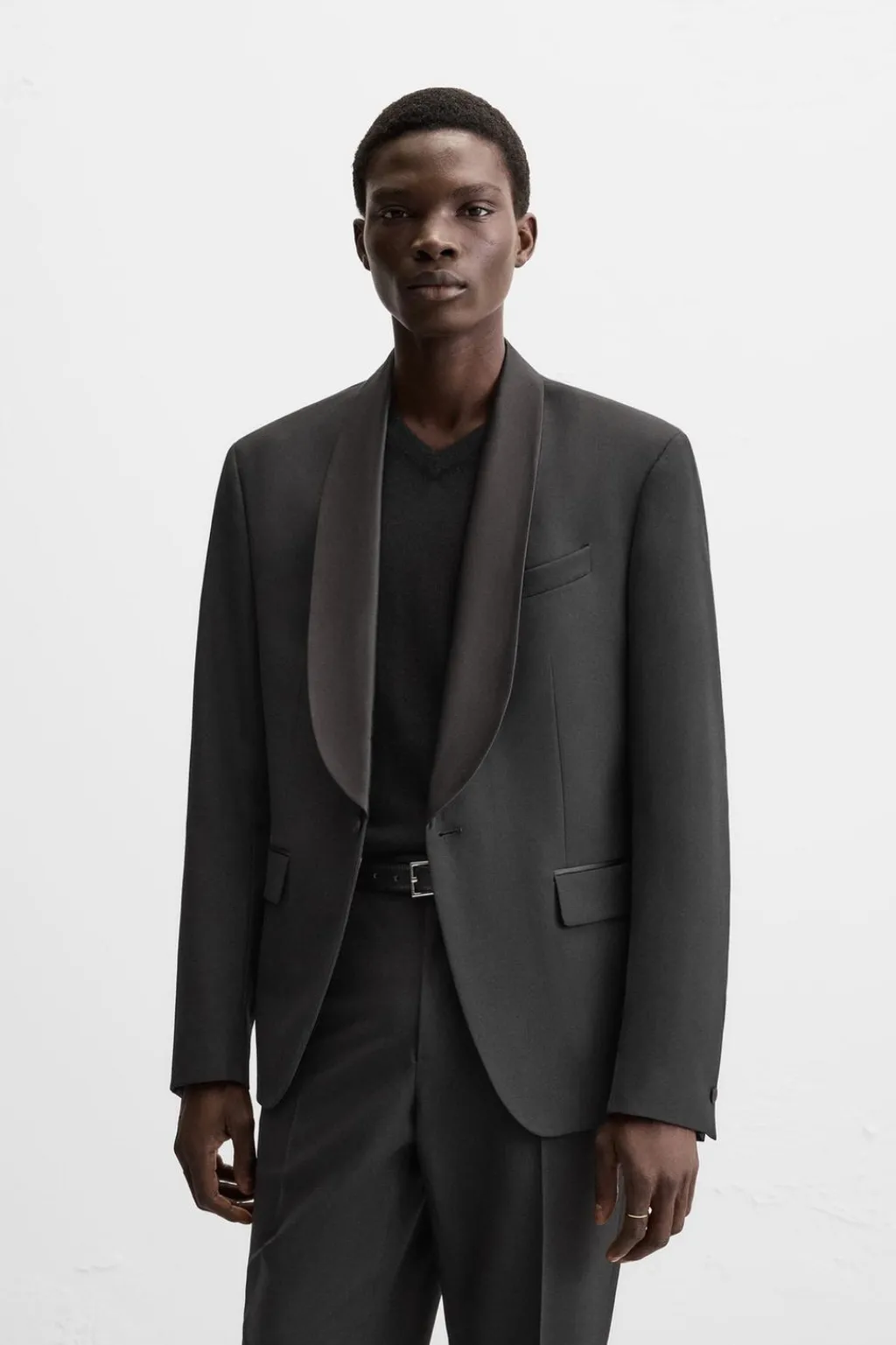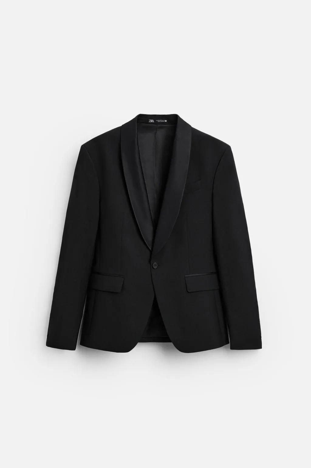 Blazer regular fit confeccionada en tejido con lana. Cuello chal y manga larga acabada en puño con botones. Bolsillo de vivo en pecho y de solapa en cadera. Detalle bolsillo interior. Bajo con aberturas en espalda. Cierre frontal con botones.