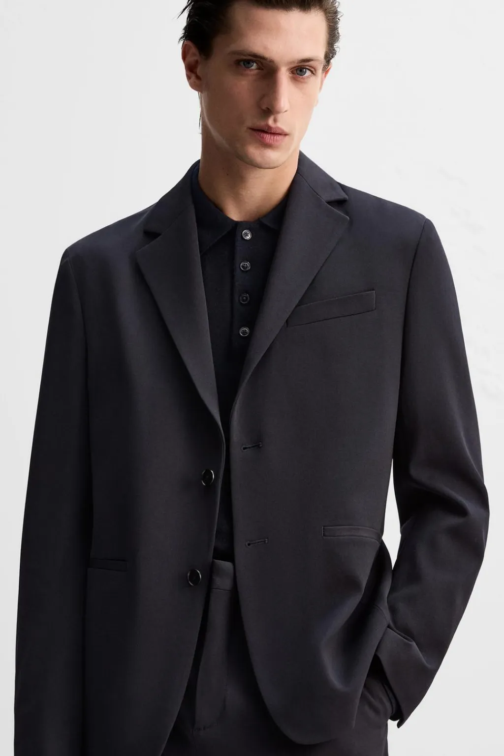 Blazer regular fit confeccionada en tejido de lana con origen italiano.