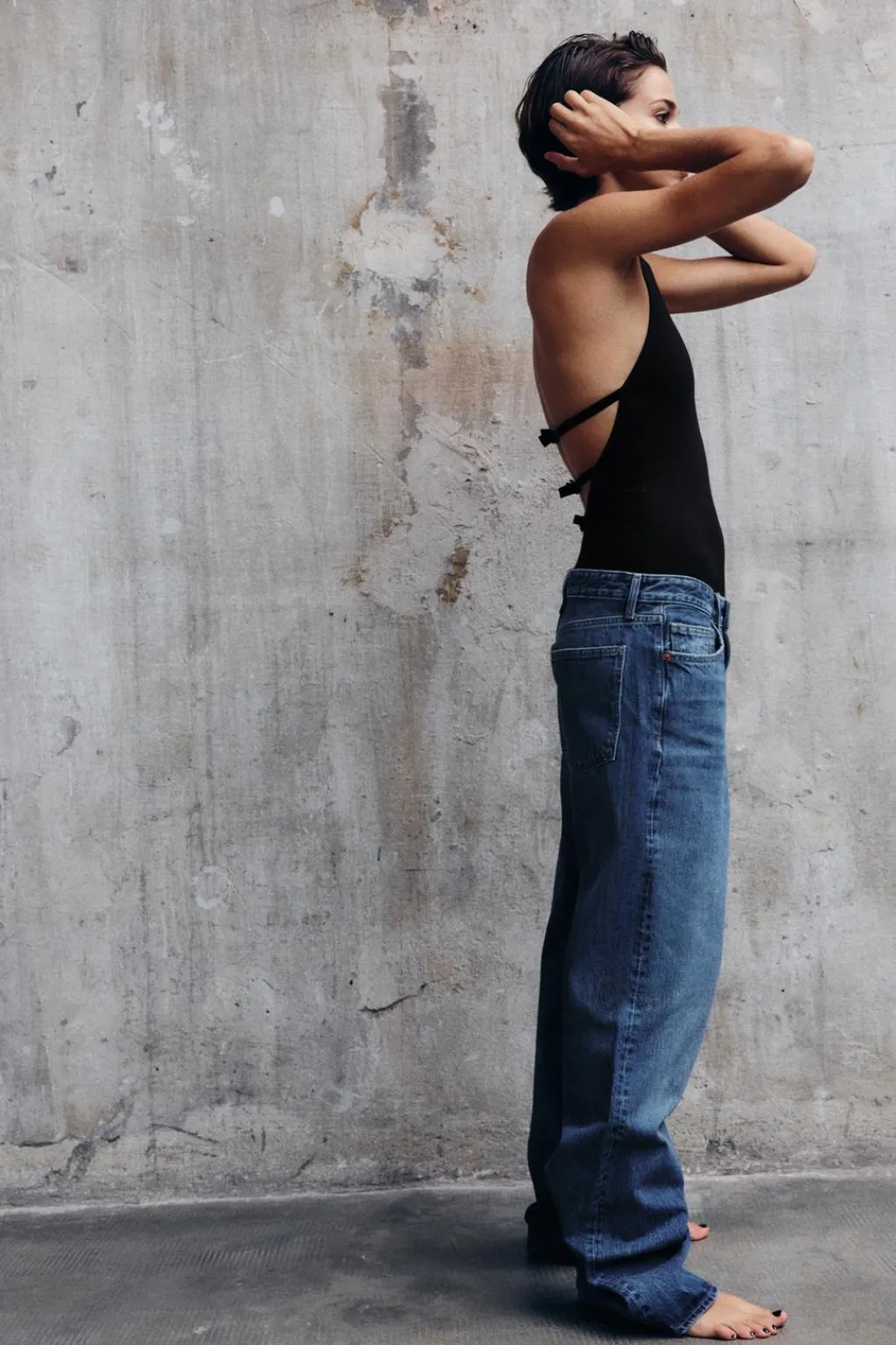 Body entallado de cuello halter con botones. Espalda descubierta. Cierre en bajo con botones a presión. Detalle de espalda abierta con cintas y lazos combinados a tono. Cierre en bajo con botones a presión.