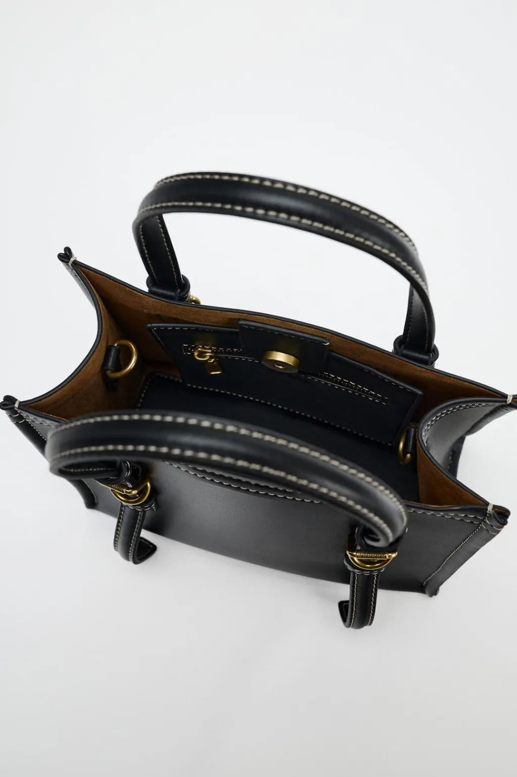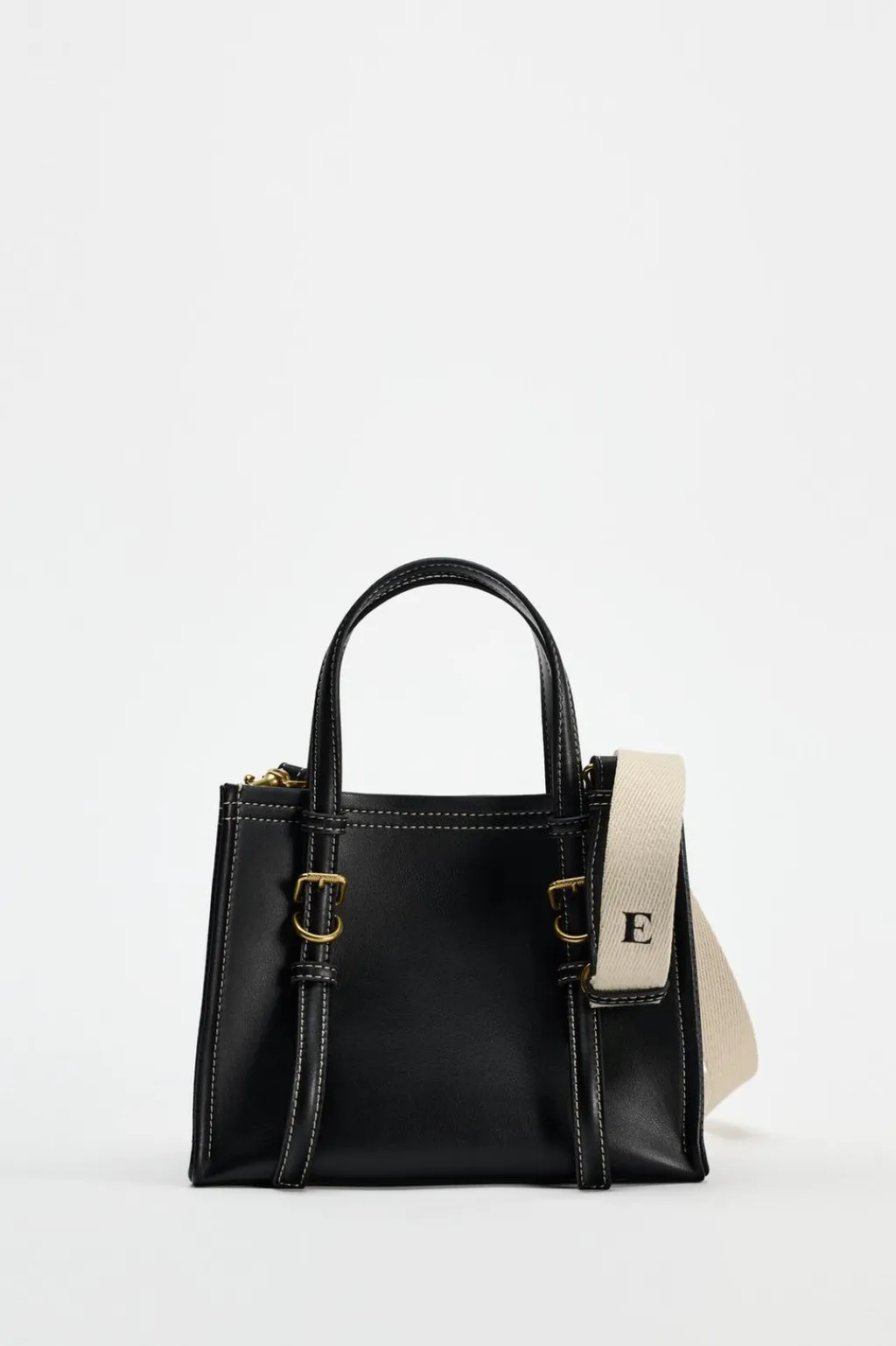 Bolso formato mini shopper. Asas de mano y asa bandolera extraíble. Bolsillo interior de cierre con cremallera. Cierre mediante imán.