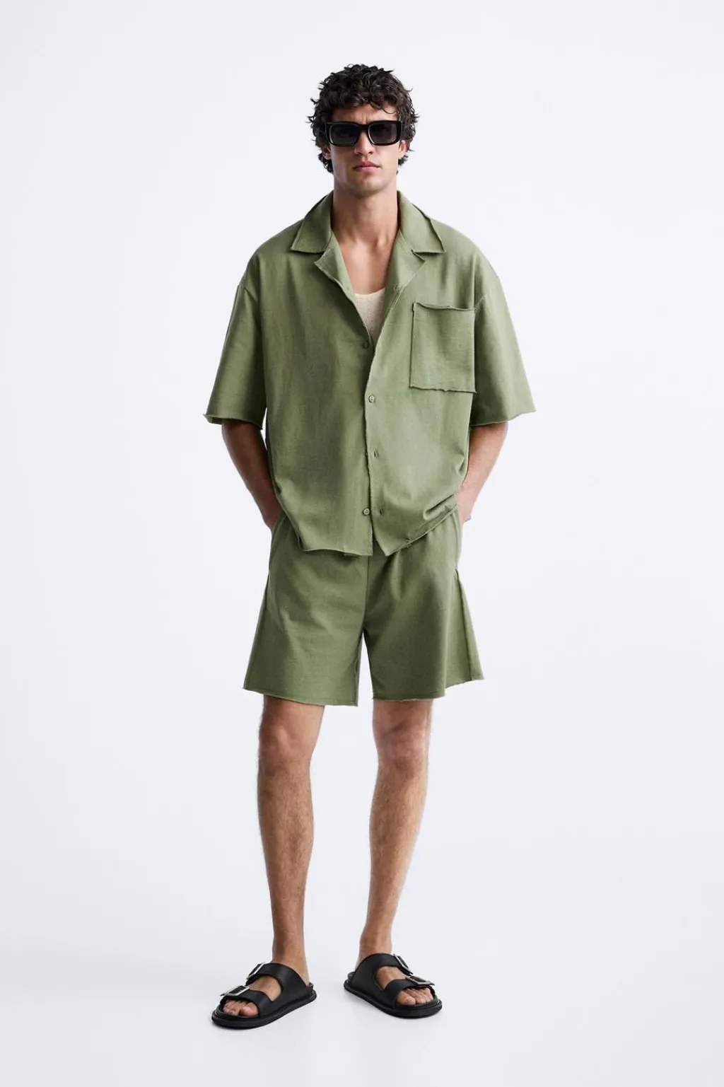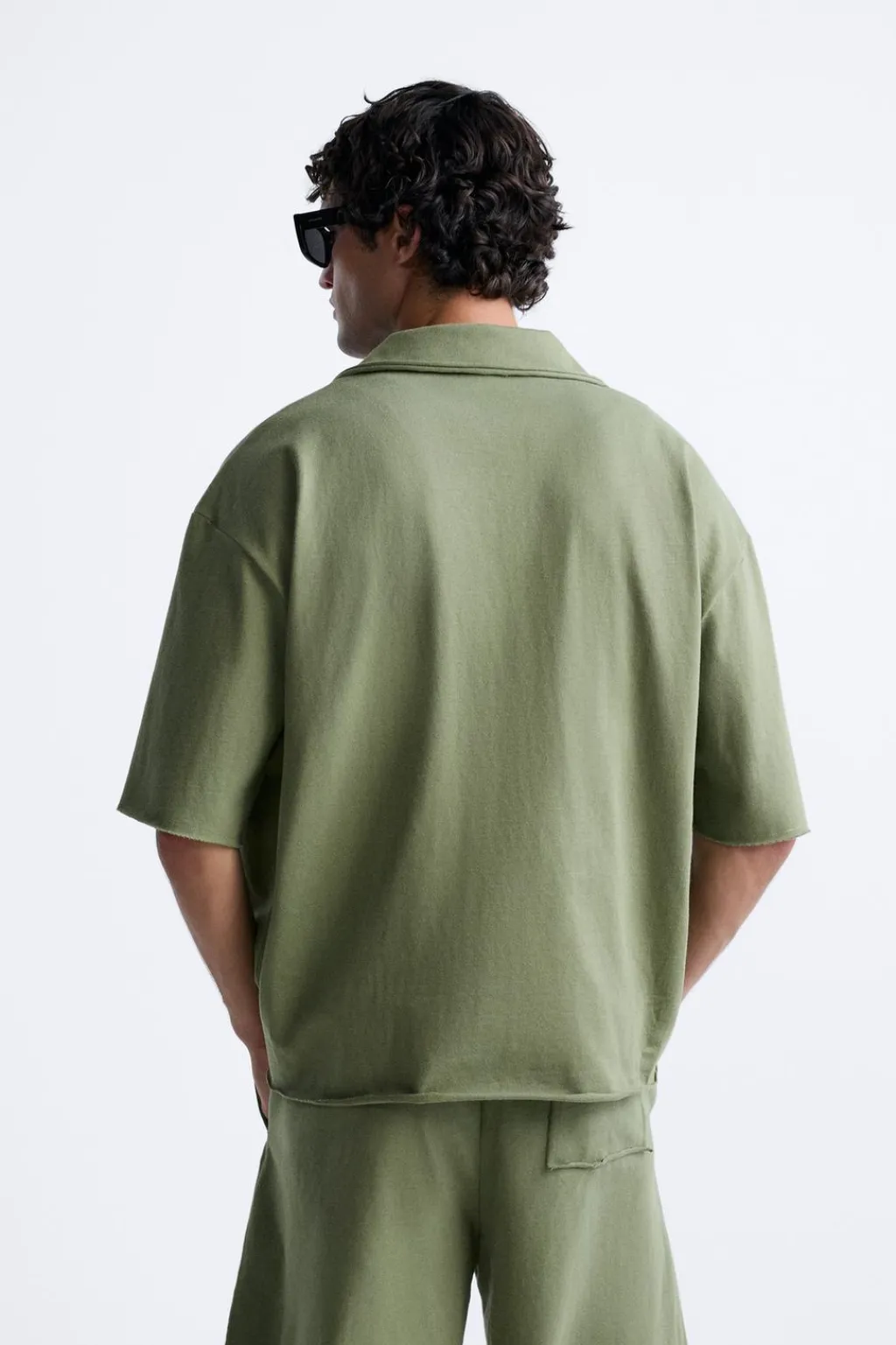 Camisa boxy fit. Cuello bowling y manga corta. Detalle de bolsillo plastrón en pecho. Cierre frontal de botonadura. Acabados irregulares.