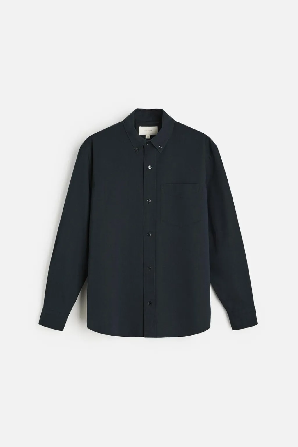 Camisa regular fit confeccionada en tejido compacto de algodón. Cuello abotonado y manga larga acabada en puño con botón. Bolsillo plastrón en pecho. Cierre frontal de botonadura.
