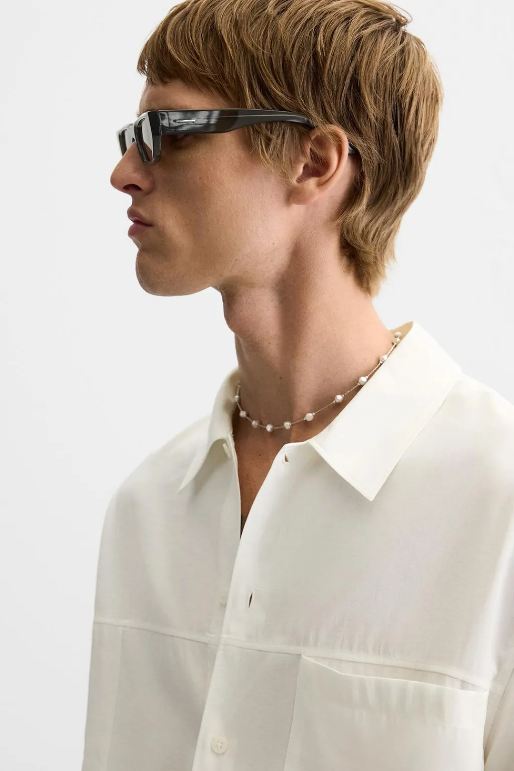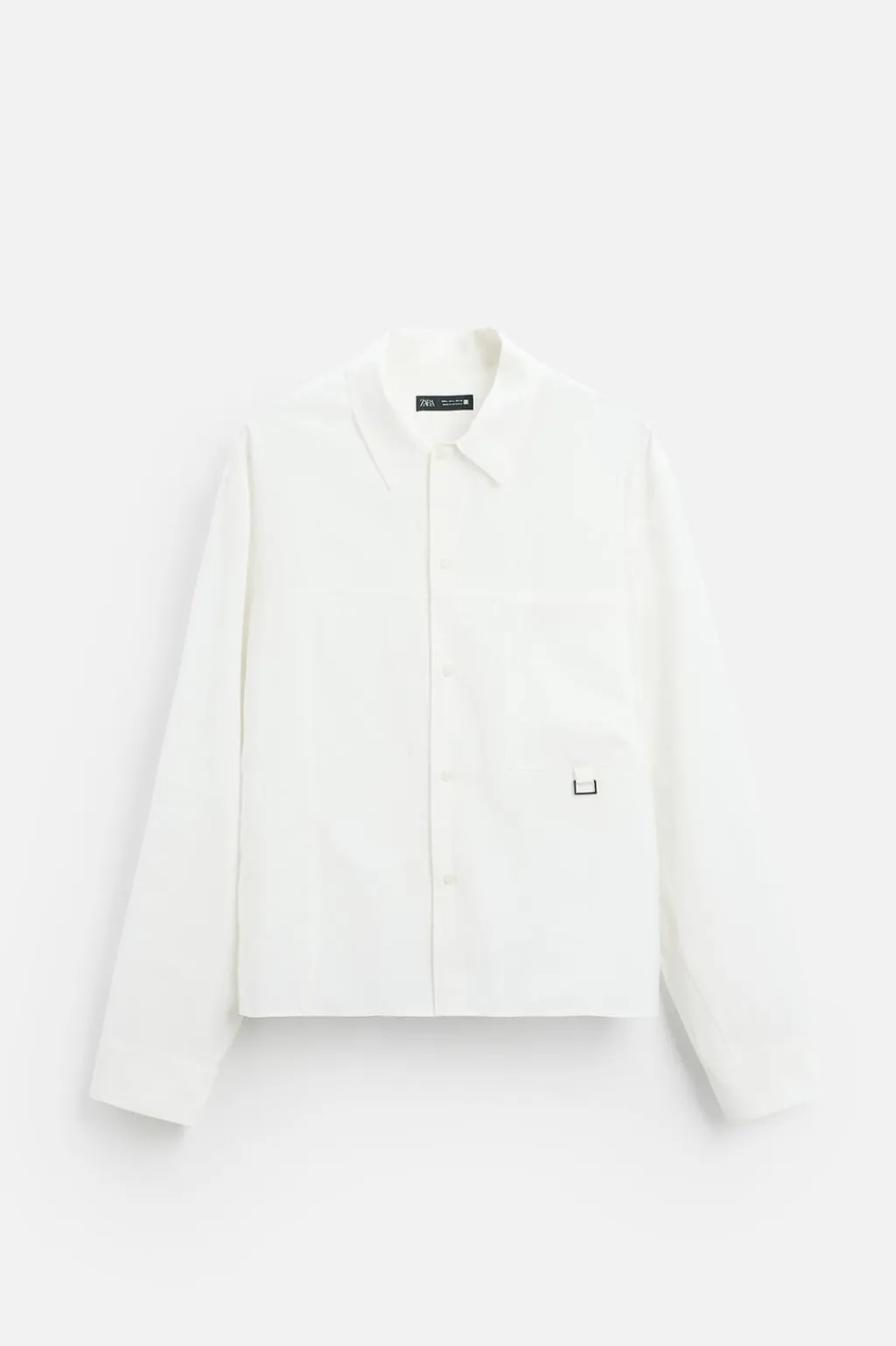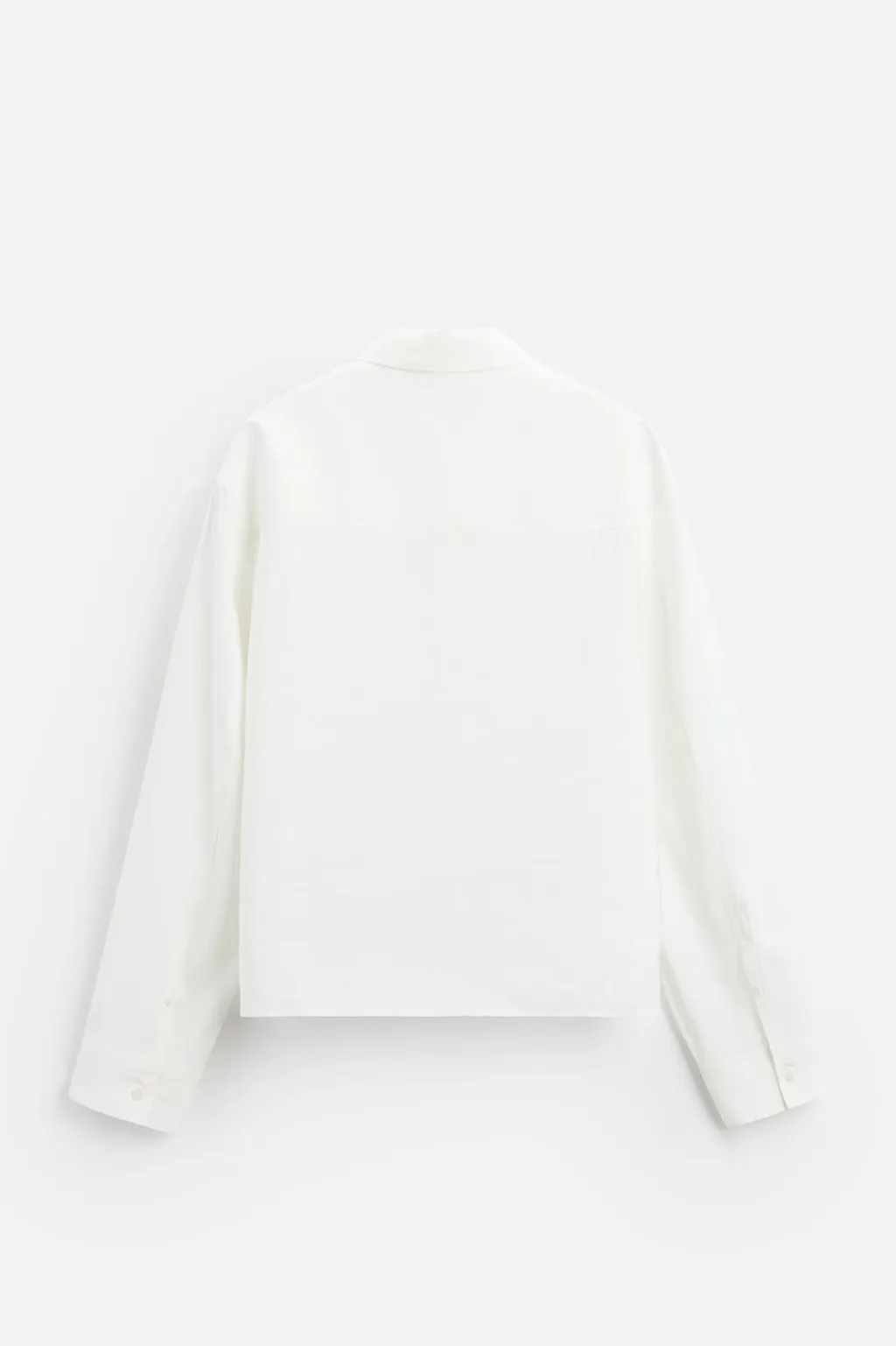 Camisa boxy fit confeccionada en tejido con modal. Cuello italiano y manga larga acabada en puño con botón. Bolsillo plastrón en pecho. Cierre frontal de botonadura.
