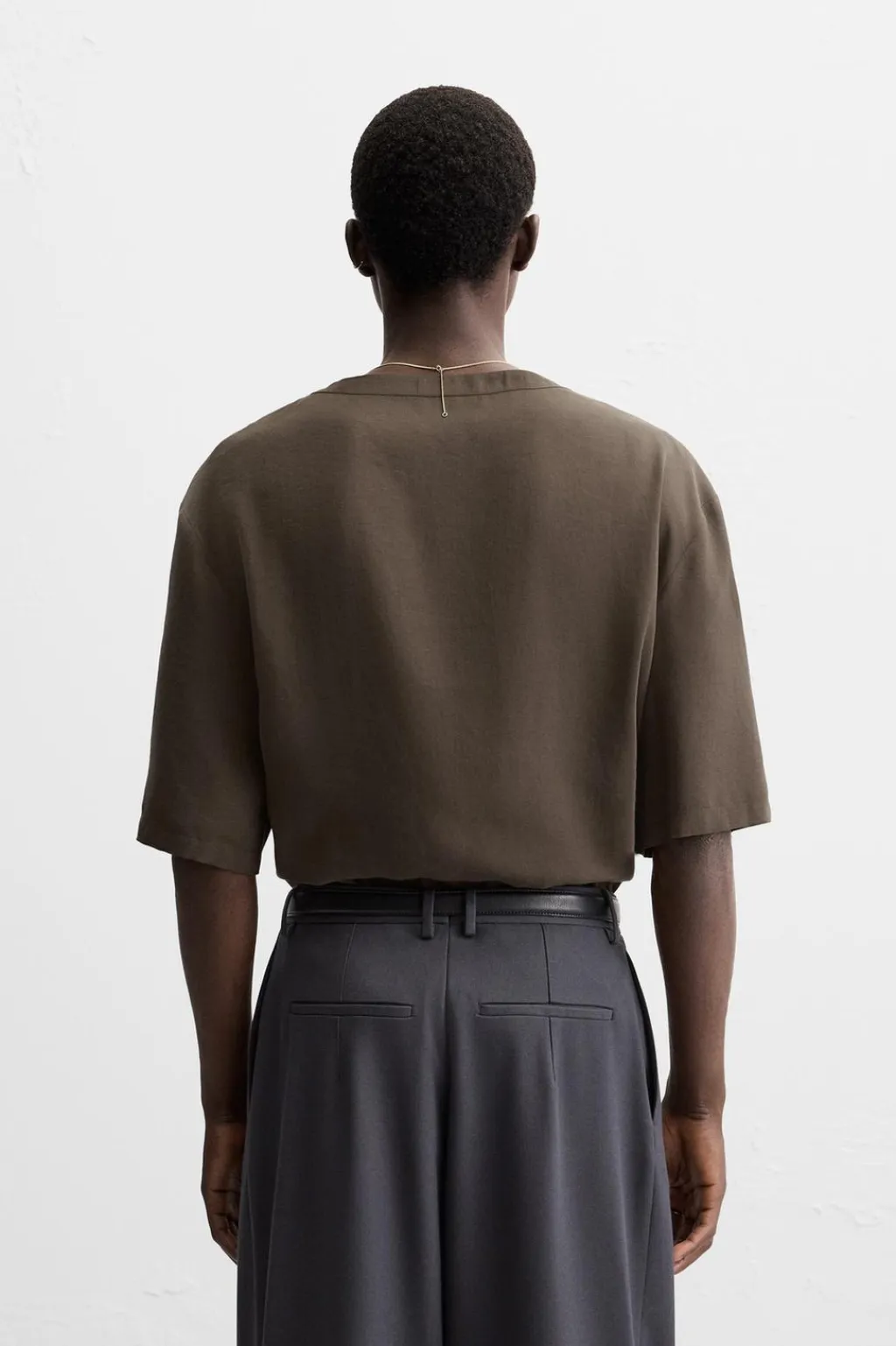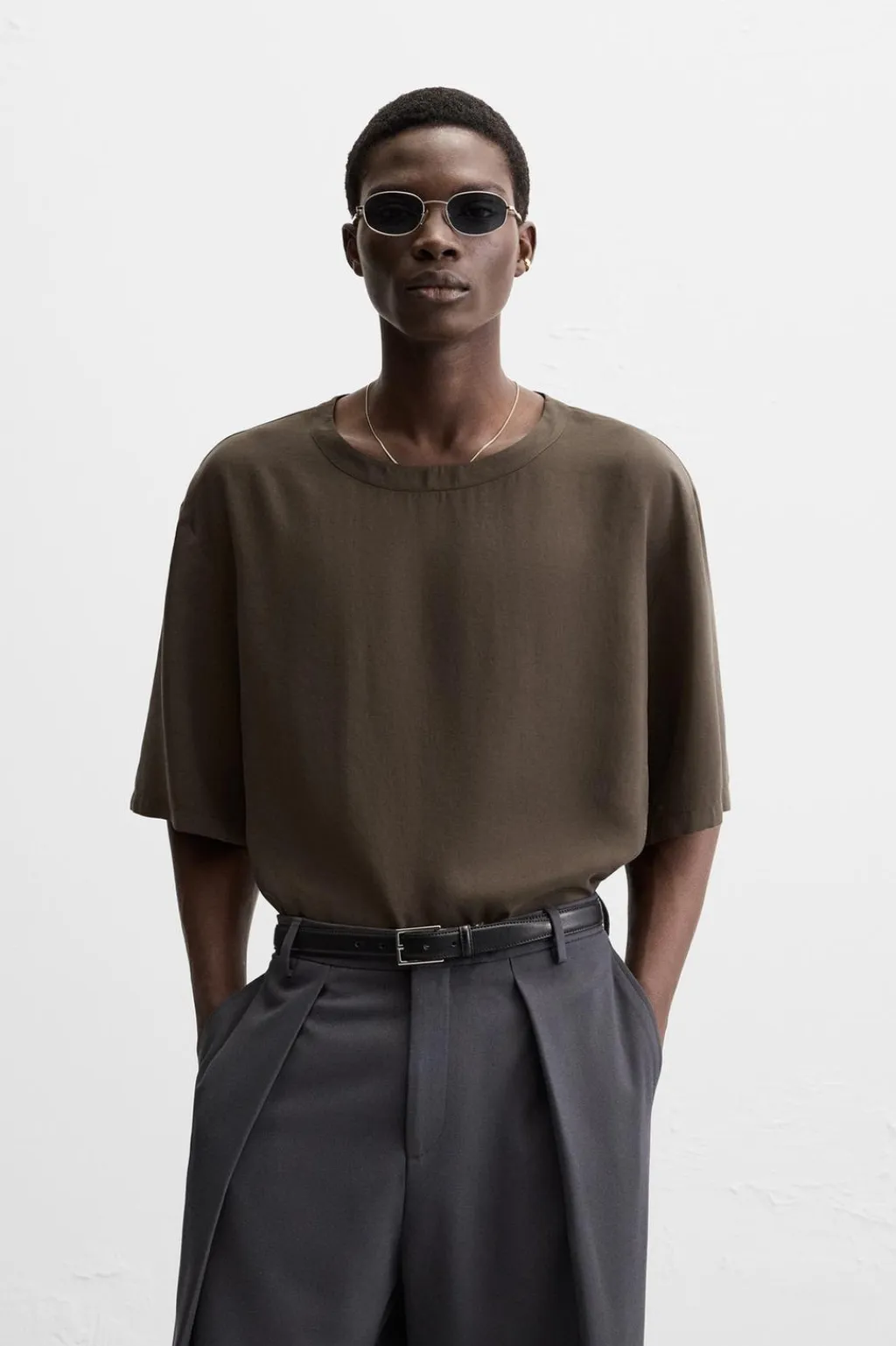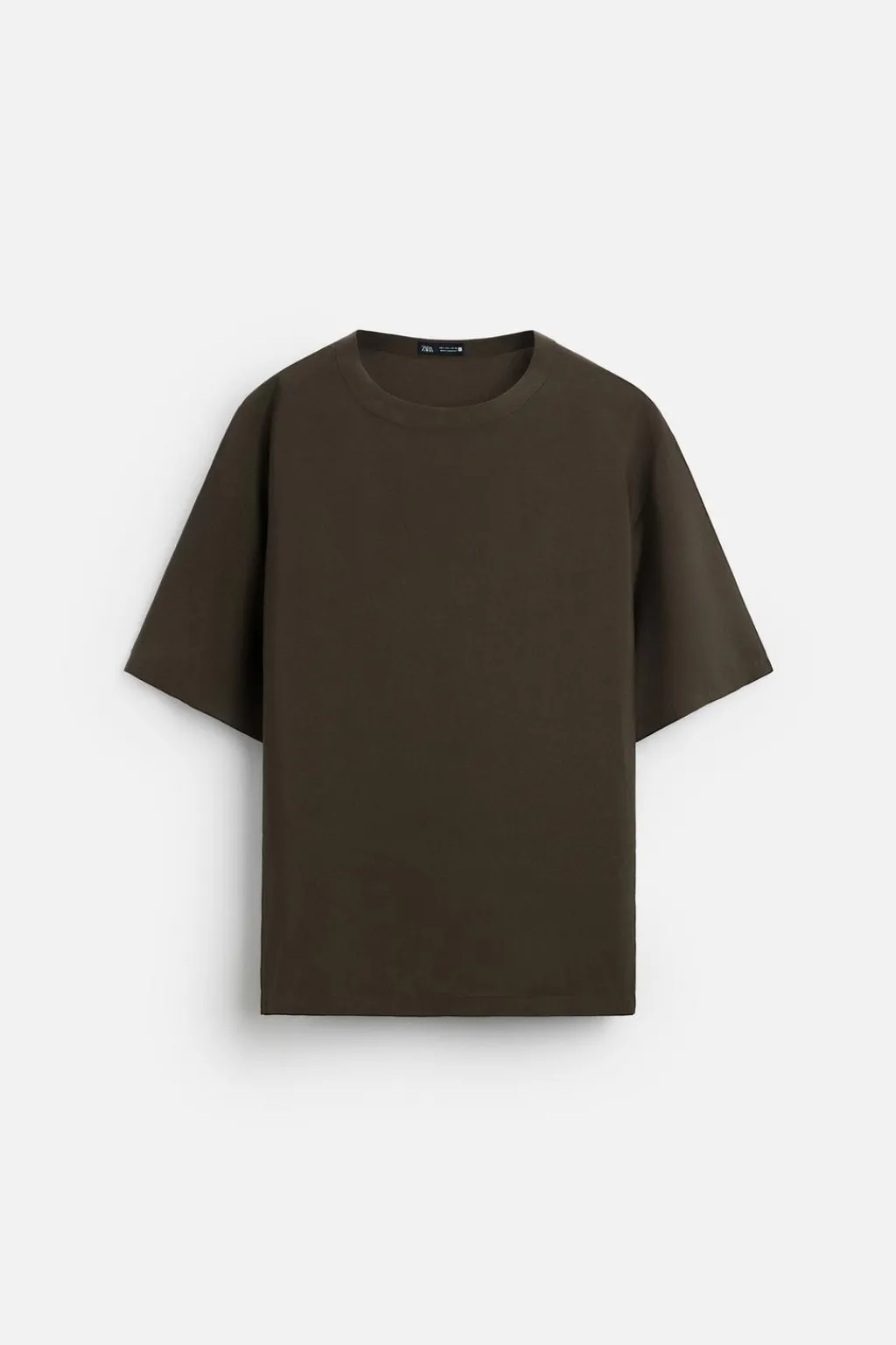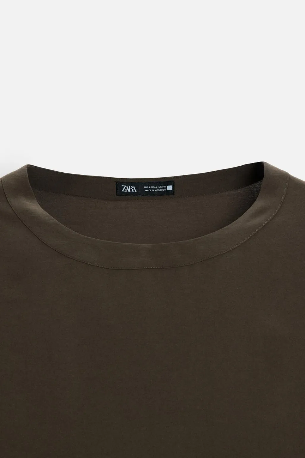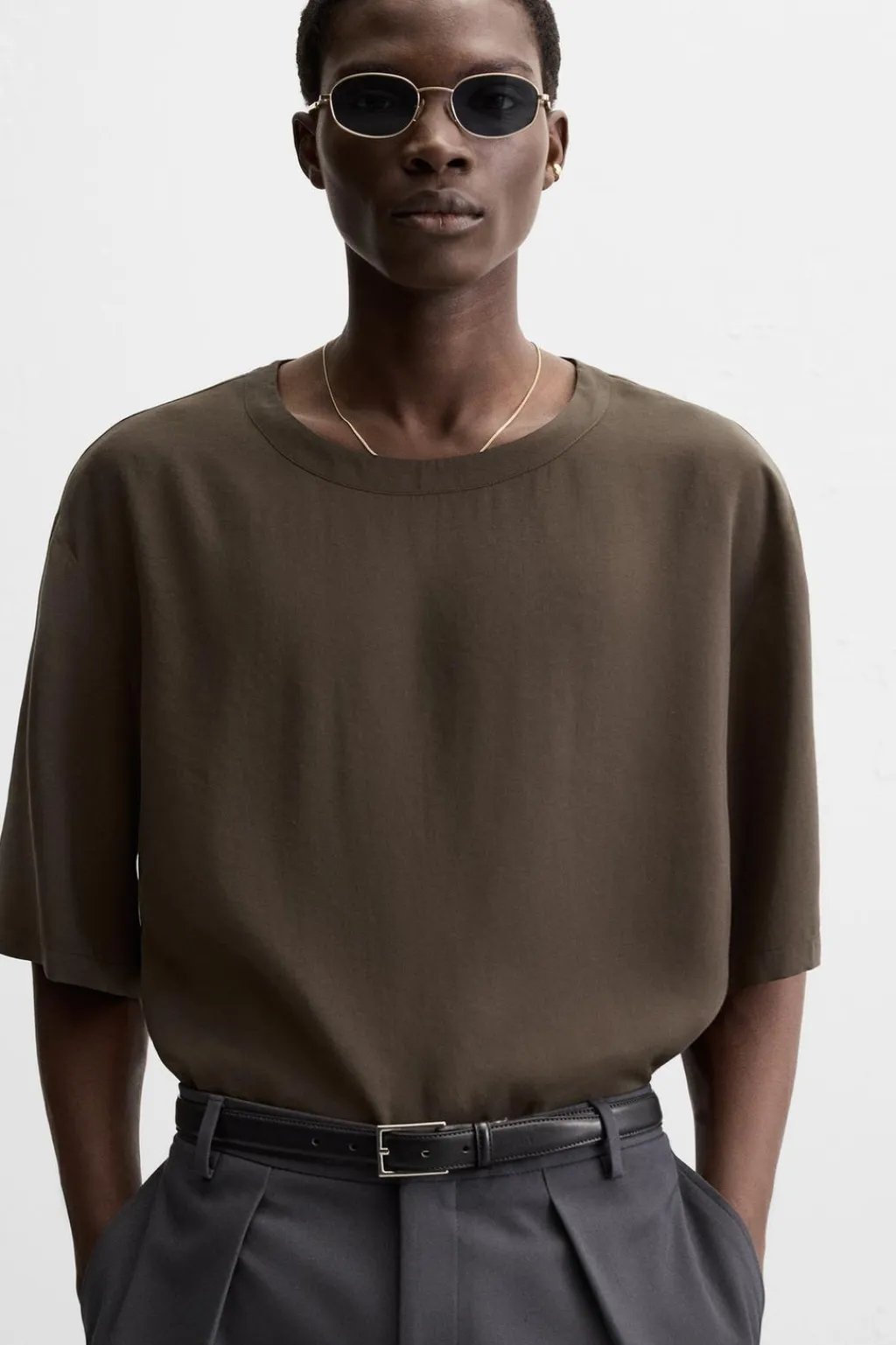 Camisa tipo camiseta confeccionada en tejido con modal. Cuello redondo y manga corta.