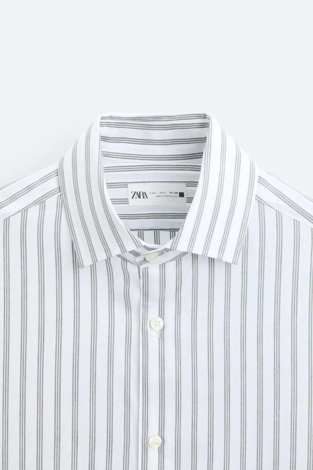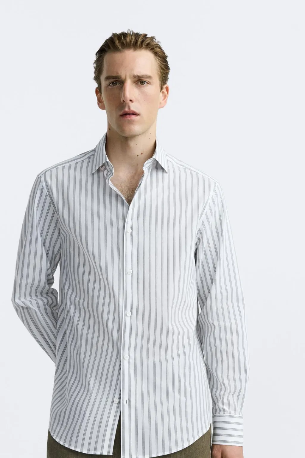 Camisa regular fit confeccionada en tejido de algodón. Cuello italiano y manga larga acaba en puño con botón. Cierre frontal de botonadura.
