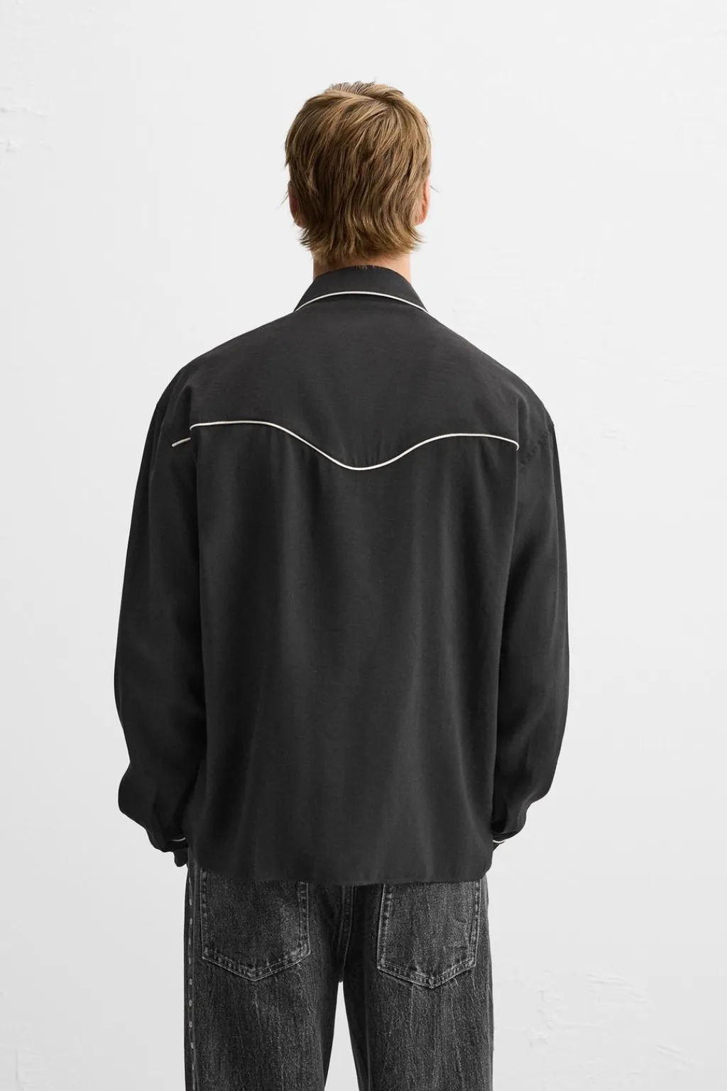 Camisa relaxed fit confeccionada en tejido con modal. Cuello italiano y manga larga acabada en puño con botón a presión. Bolsillos de vivo en pecho, Detalle de vivos combinados a contraste en toda la prenda. Bajo con aberturas en laterales. Cierre frontal con botones a presión.