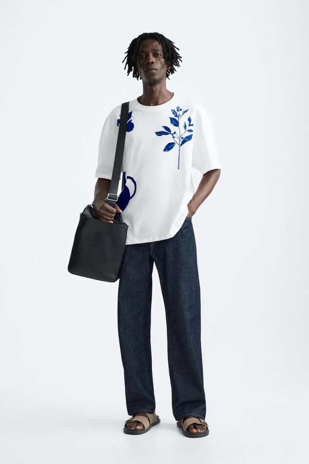 Camiseta relaxed fit. Cuello redondo y manga corta. Estampaciones combinadas a contraste en delantero y espalda.