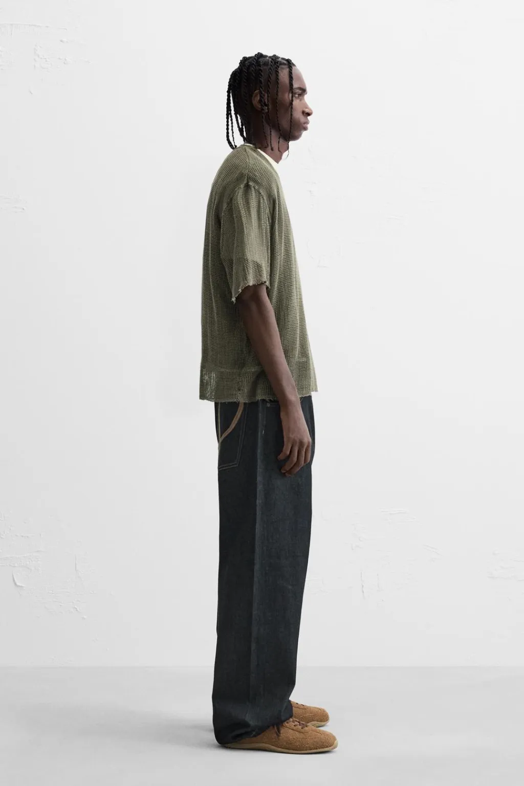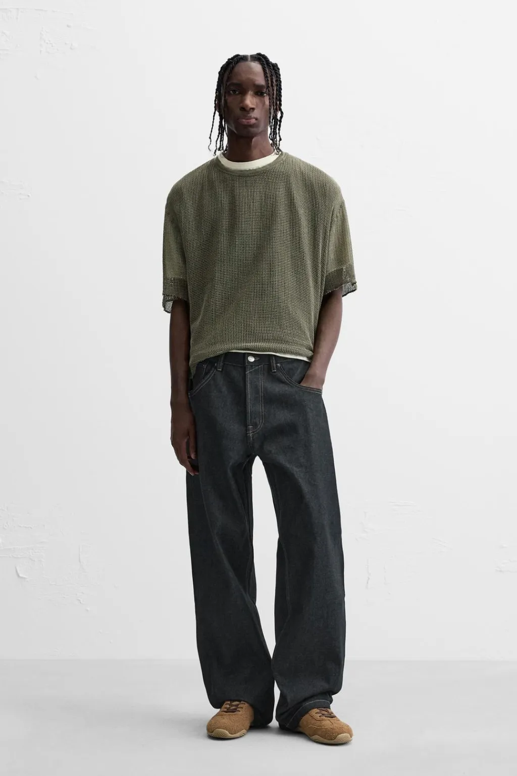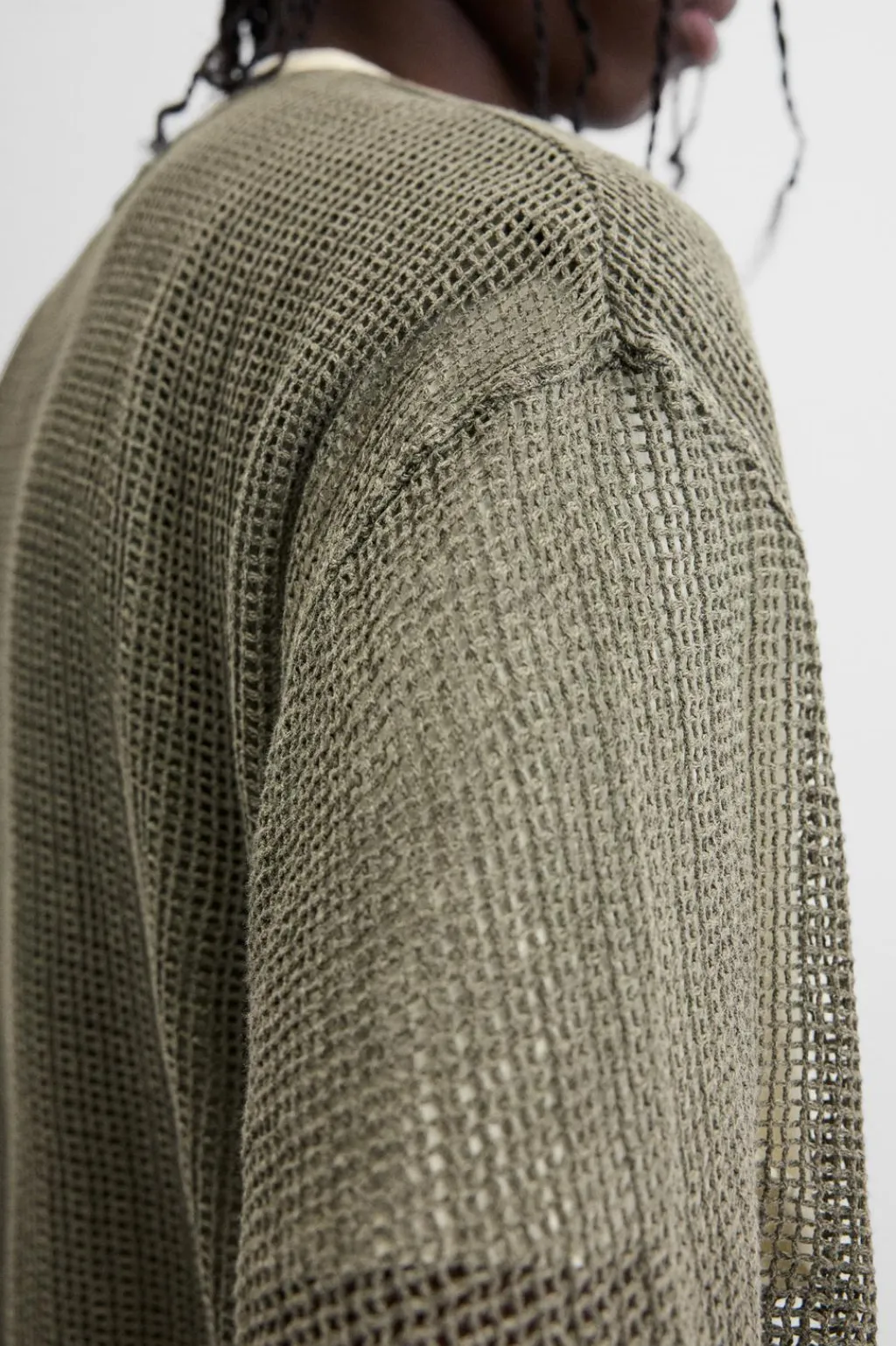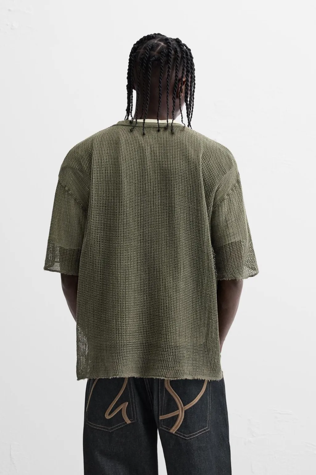 Camiseta relaxed fit confeccionada en tejido con estructura abierta. Incluye camiseta interior. Cuello redondo y manga corta. Acabados irregulares.