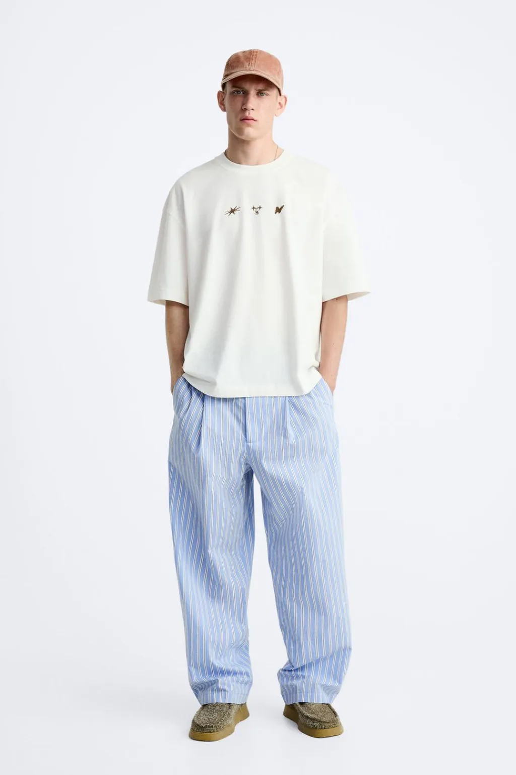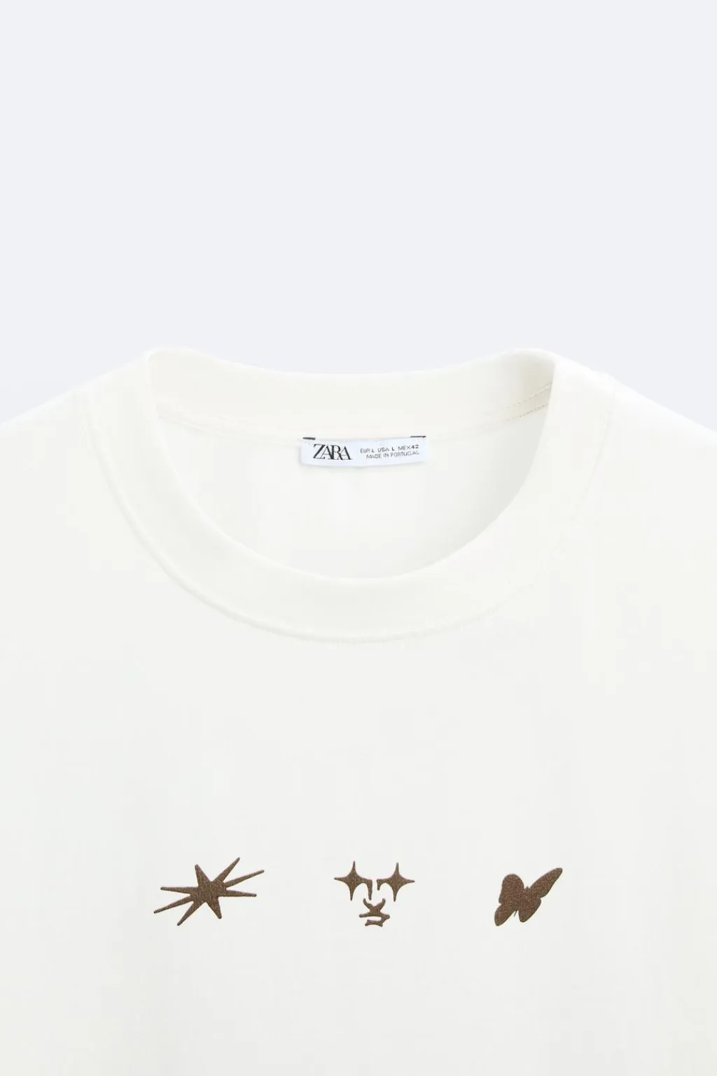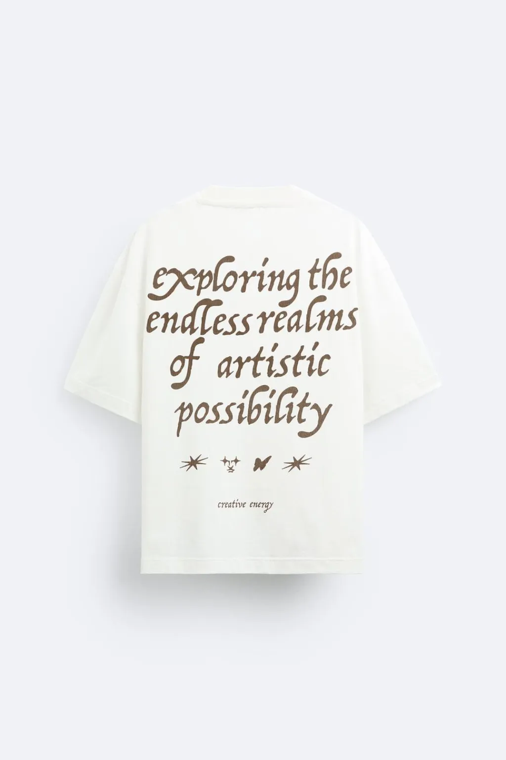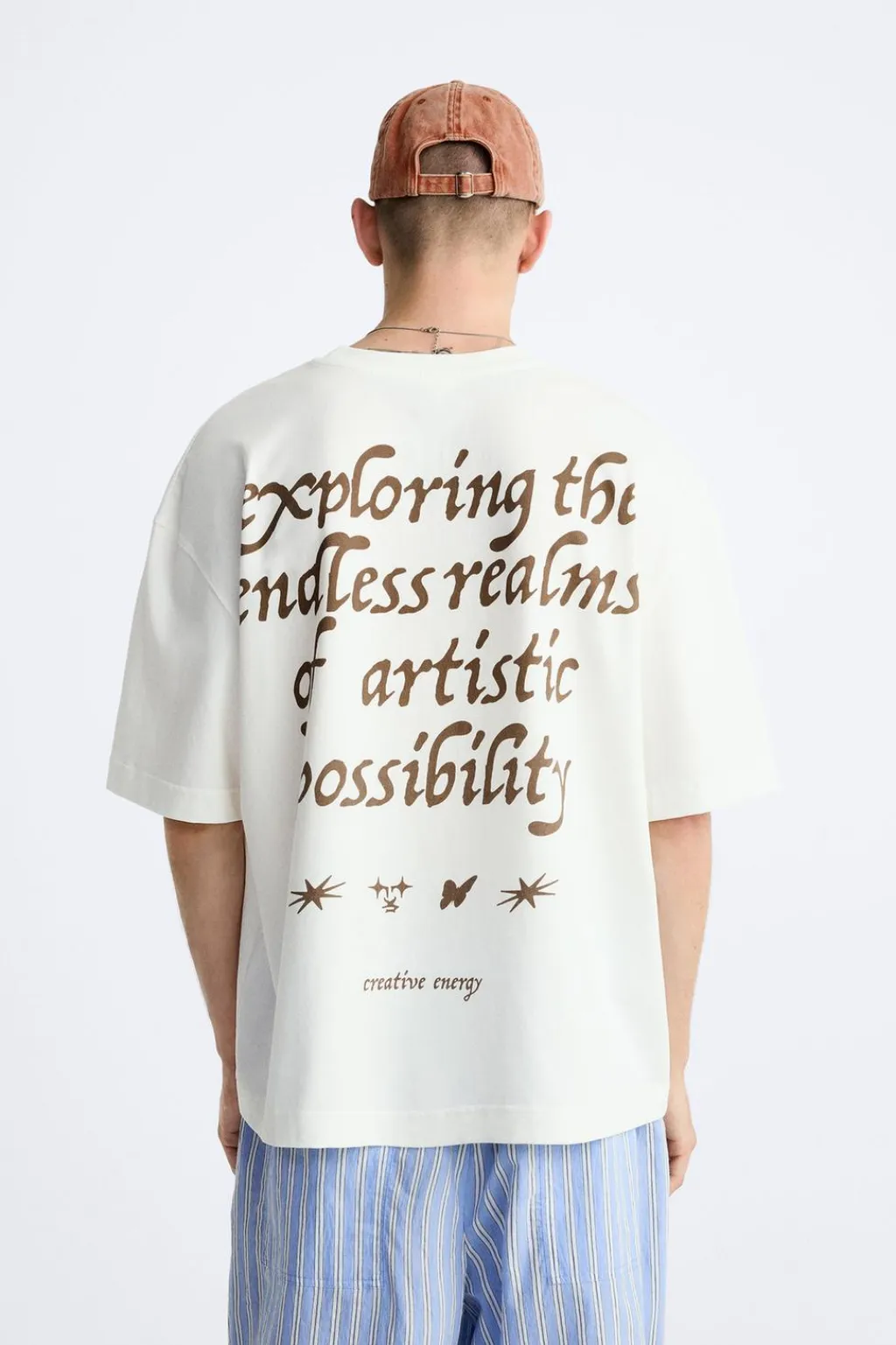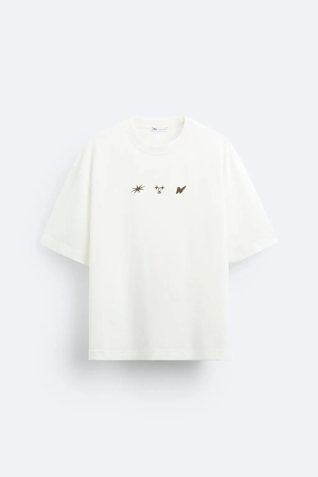 Camiseta relaxed fit. Cuello redondo y manga corta. Estampaciones combinadas a contraste en delantero y espalda.