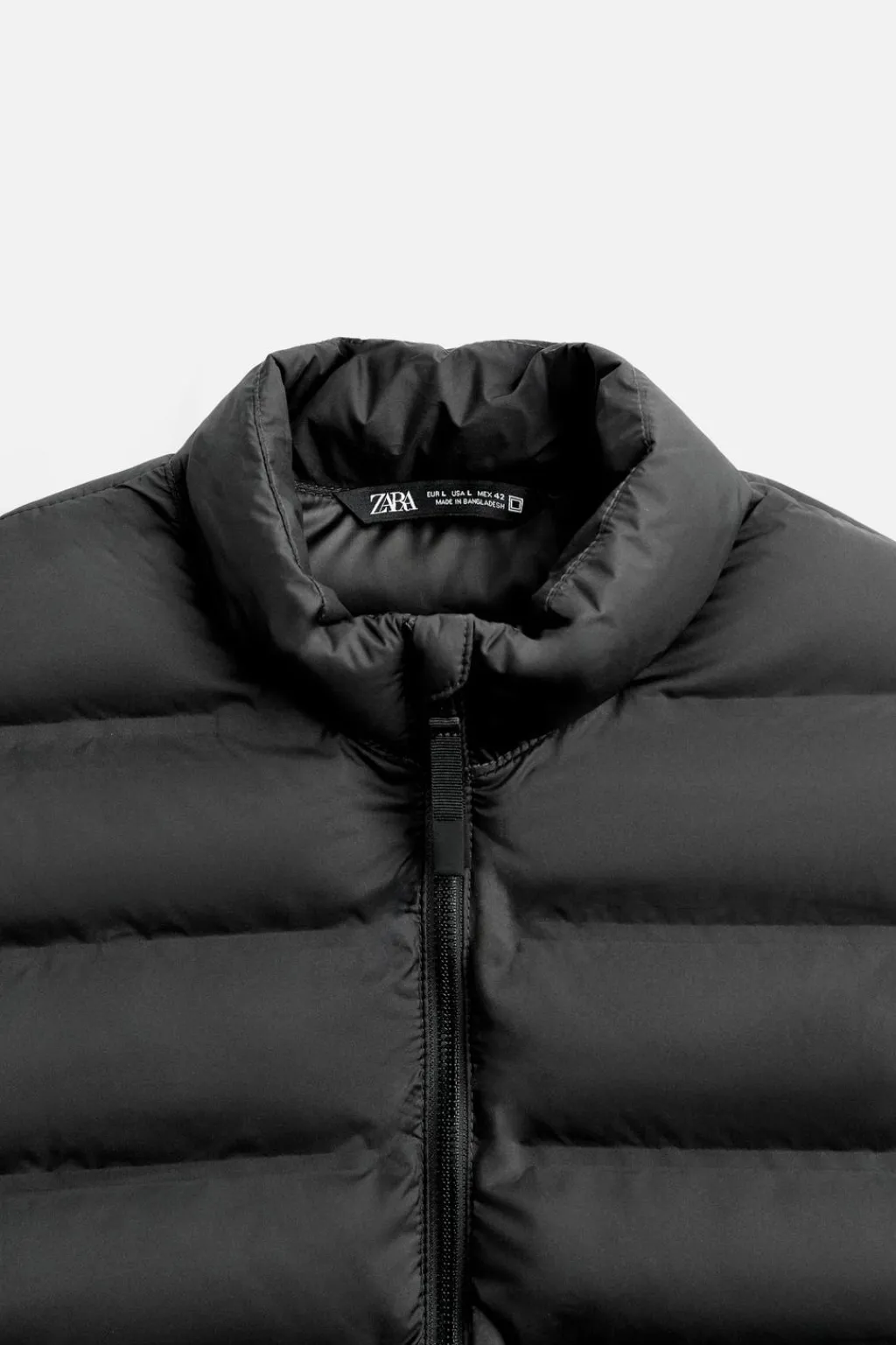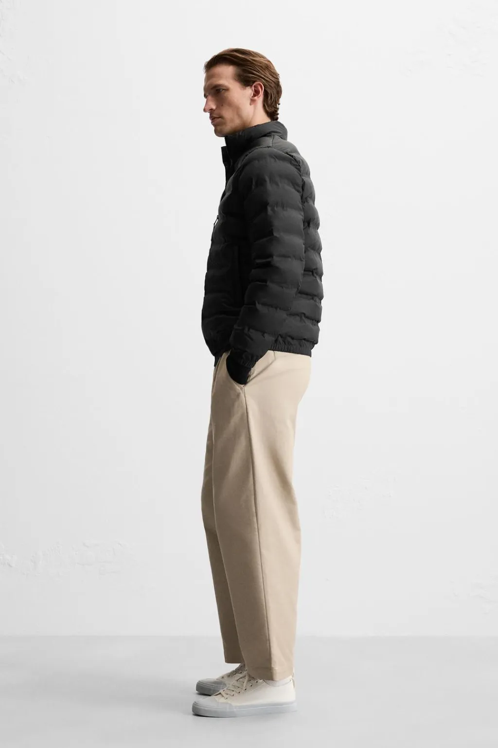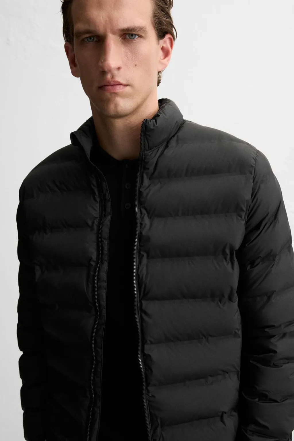 Cazadora acolchada regular fit. Cuello subido y manga larga. Bolsillos de vivo en cadera. Acabados con cinta elástica. Cierre frontal de cremallera.