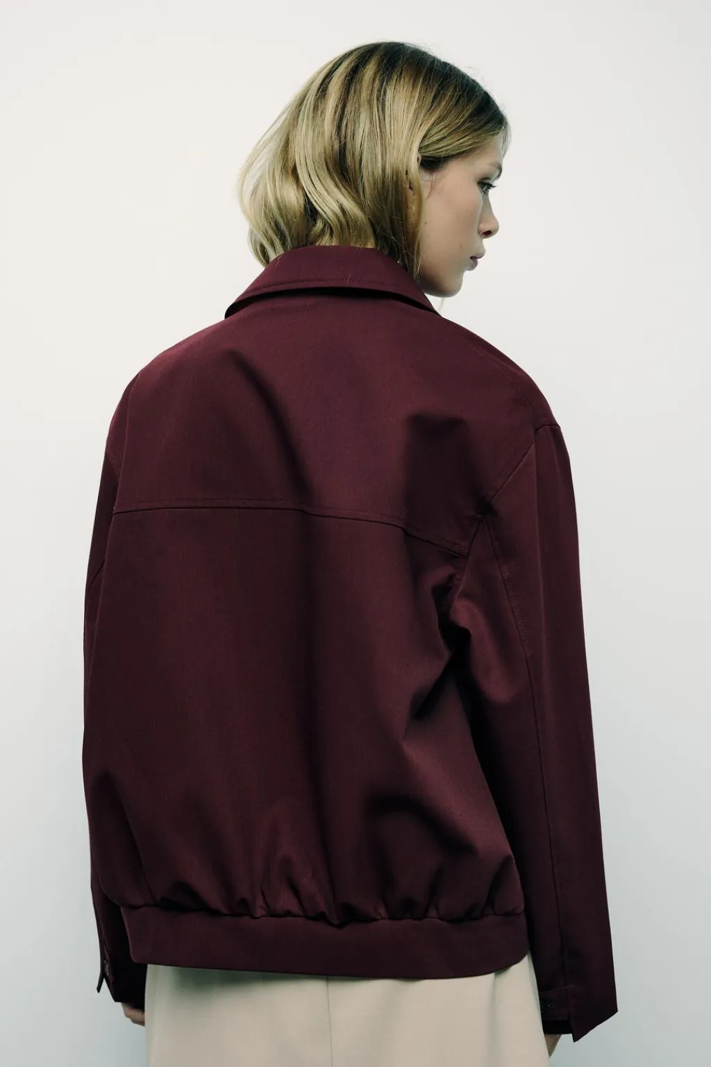 Chaqueta bomber de cuello solapa. Manga larga con trabilla. Bolsillos de vivo en delantero. Forro interior. Cierre frontal con cremallera.