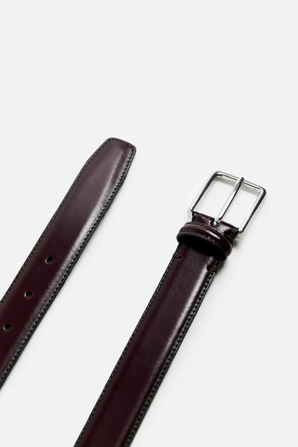 Cinturón confeccionado en piel. Acabado con pespunte. Cierre con hebilla metálica y pasador.