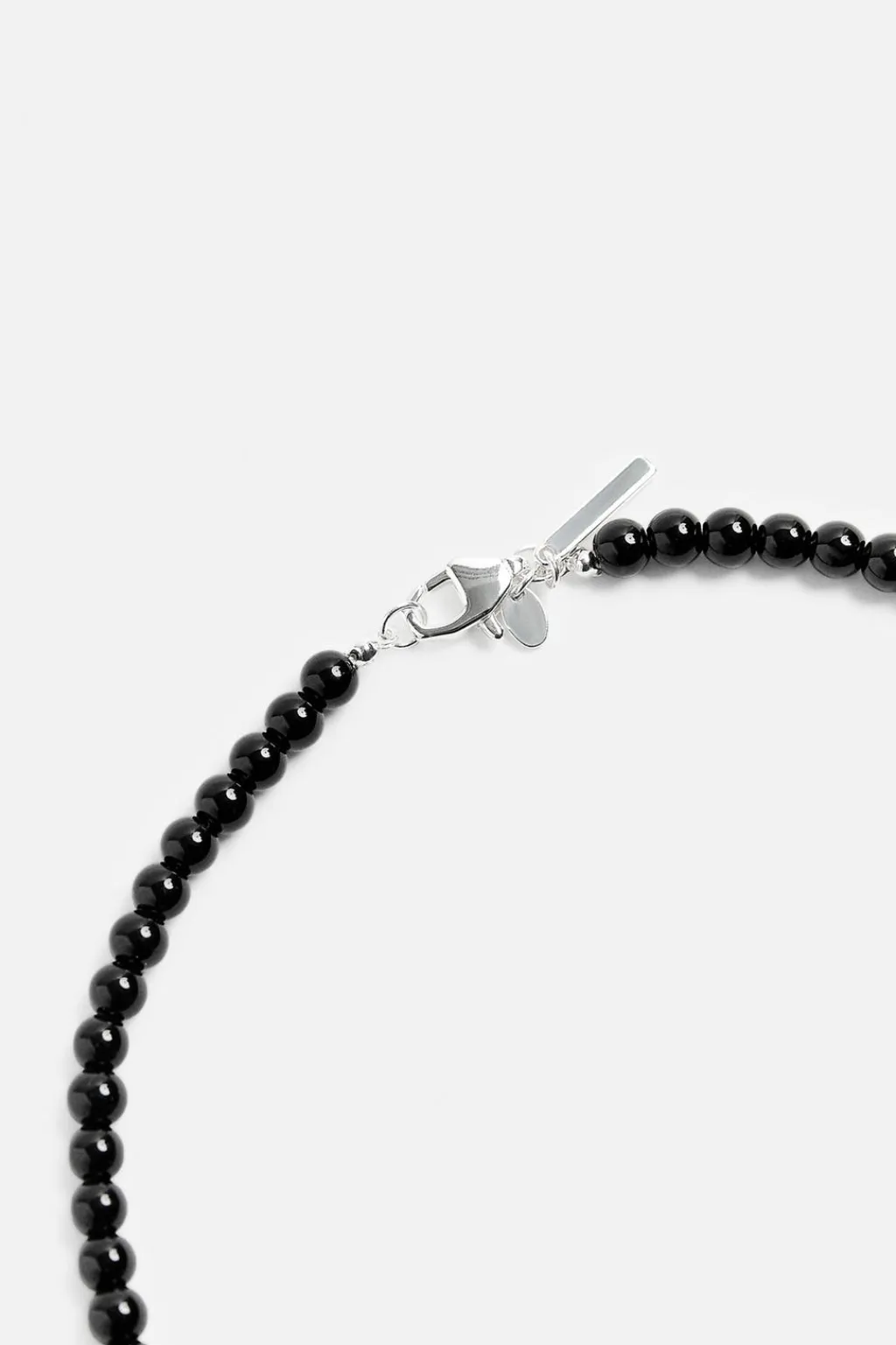 Collar compuesto por abalorios de piedra combinados a tono. Cierre de mosquetón con detalle metálico acabados con baño de plata 925 MM.