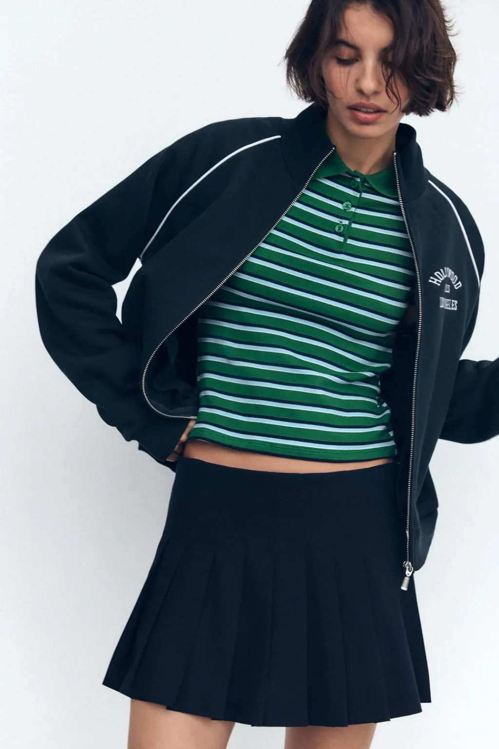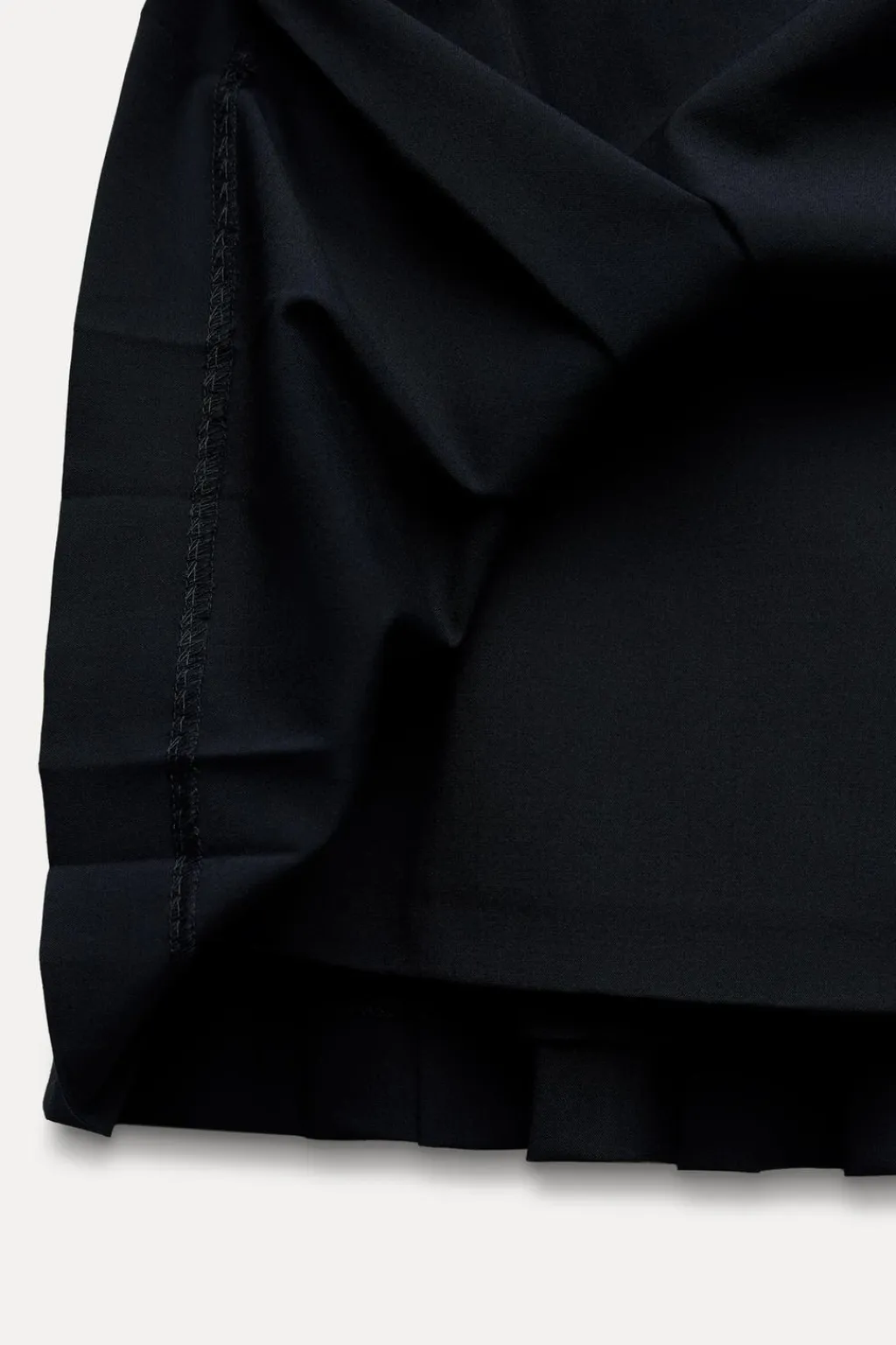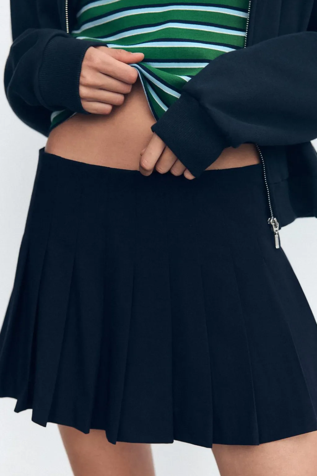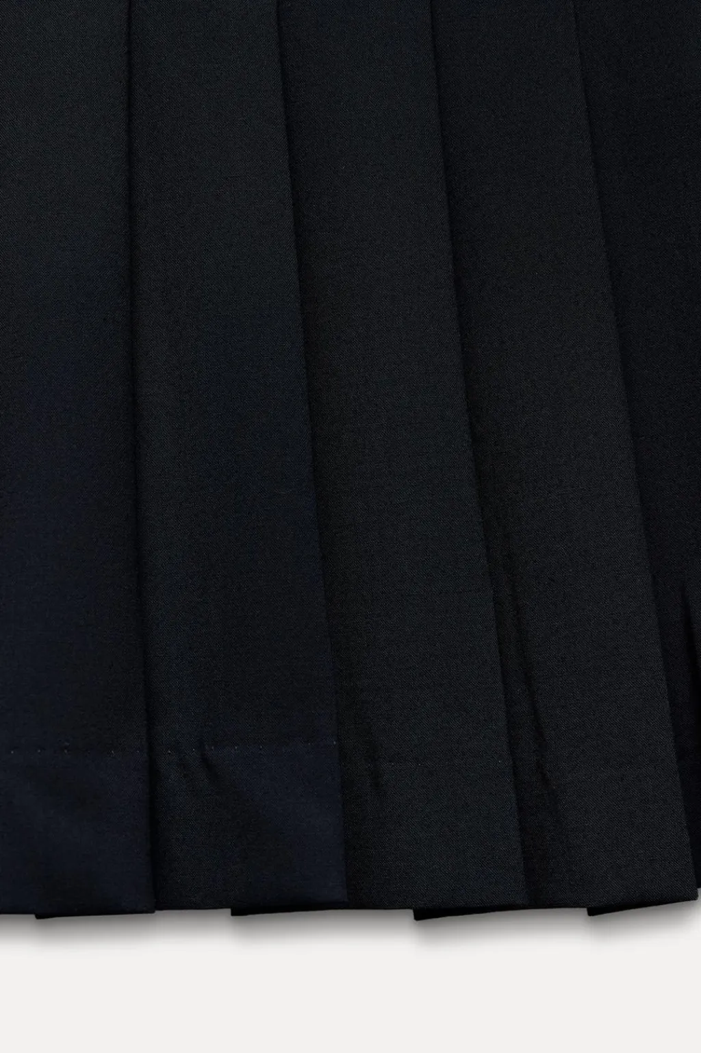 Falda pantalón de tiro medio. Bajo acabado en tablas. Cierre lateral con cremallera oculta en costura.
