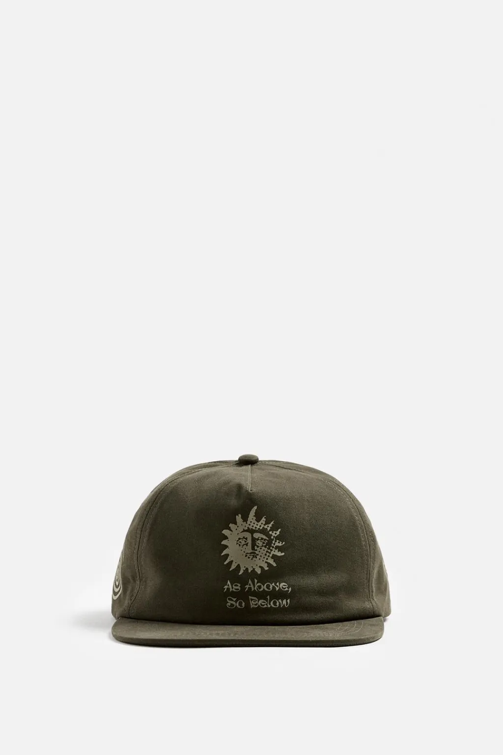 Gorra con visera plana. Estampado frontal combinado a contraste. Ajuste en la parte posterior.