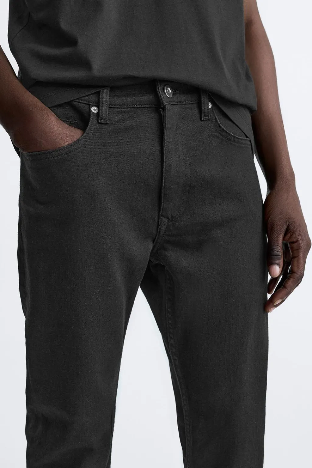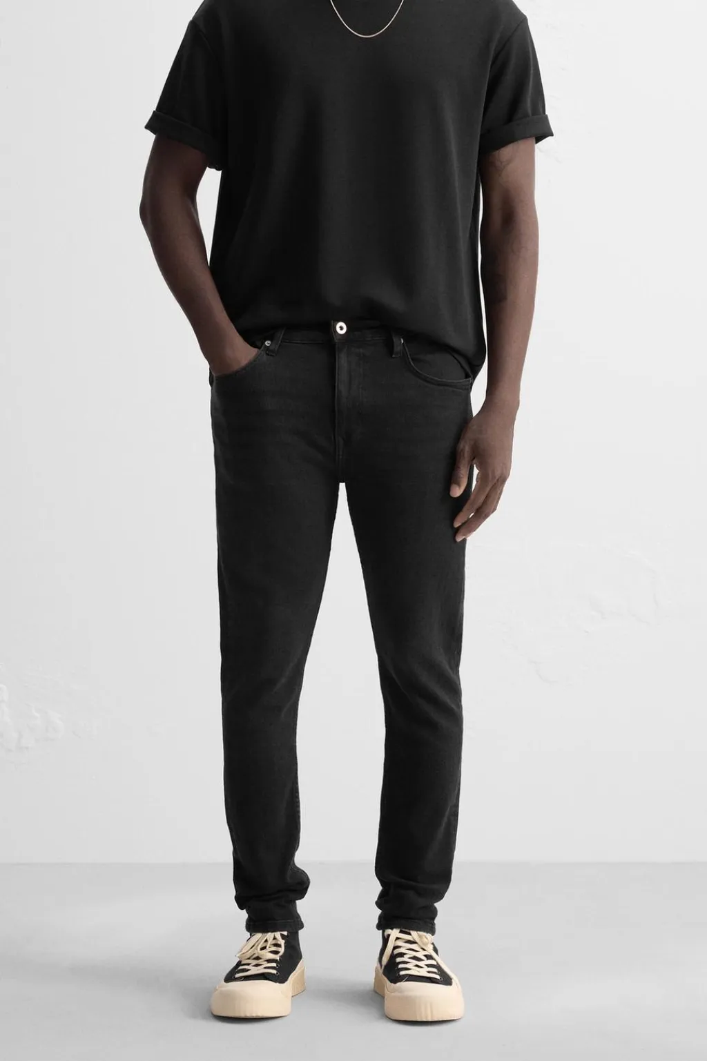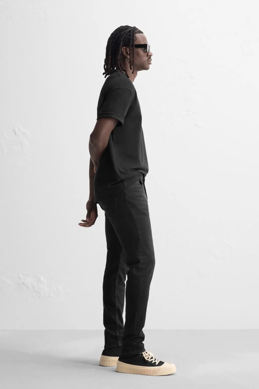 Jeans skinny fit. Cinco bolsillos. Efecto lavado. Cierre frontal con cremallera y botón.