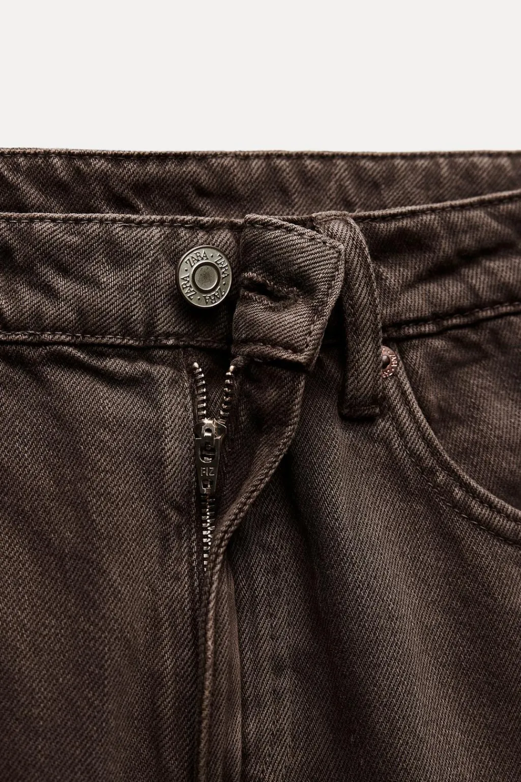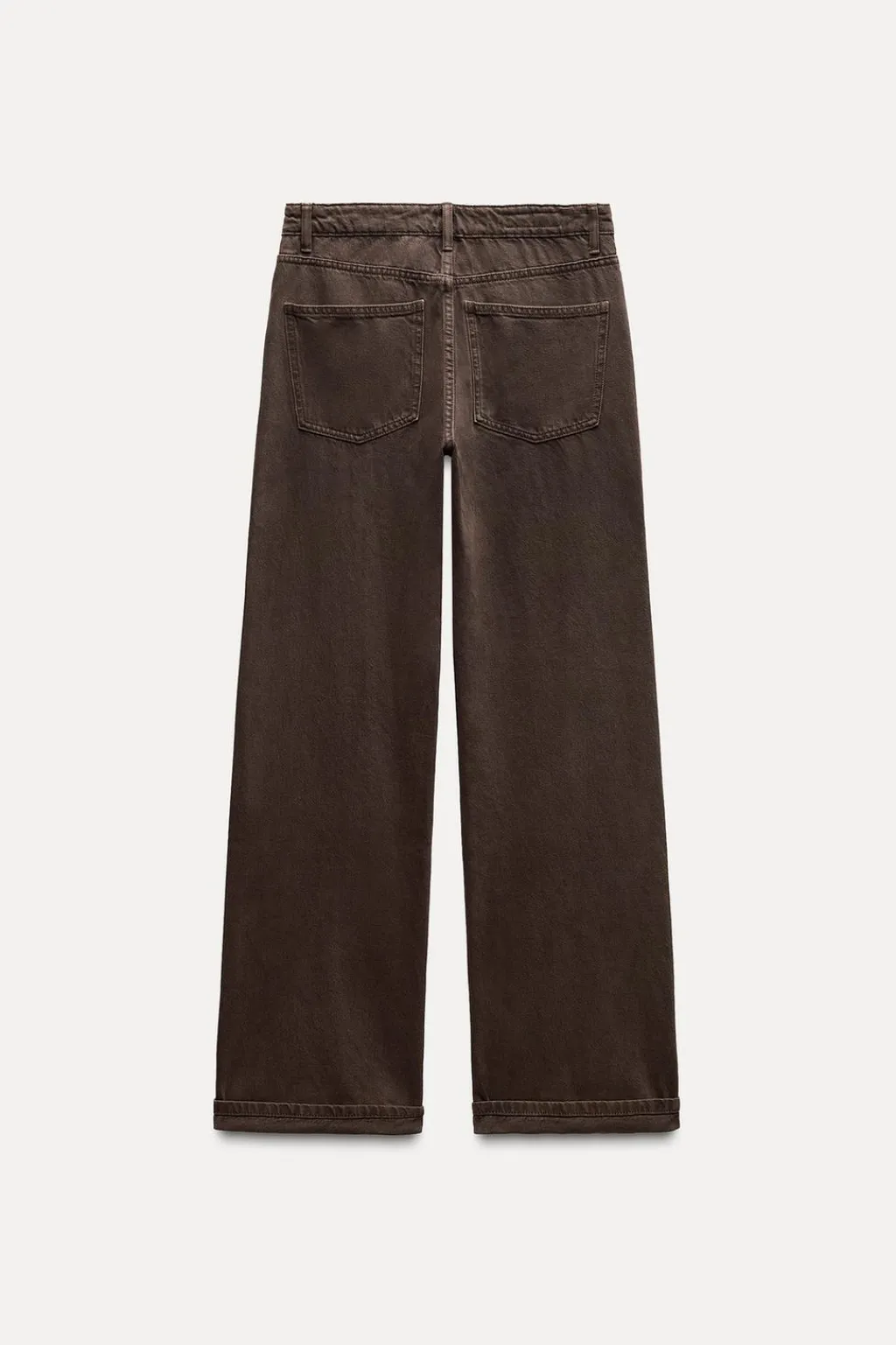 Jeans de tiro medio con trabillas y cinco bolsillos. Pernera recta acabada en vuelta. Cierre frontal con cremallera y botón.