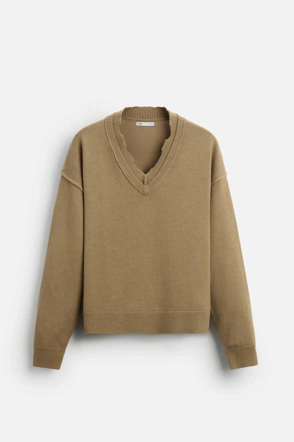 Jersey cropped fit. Cuello pico efecto doble con acabado irregular. Manga larga. Acabados en ib.
