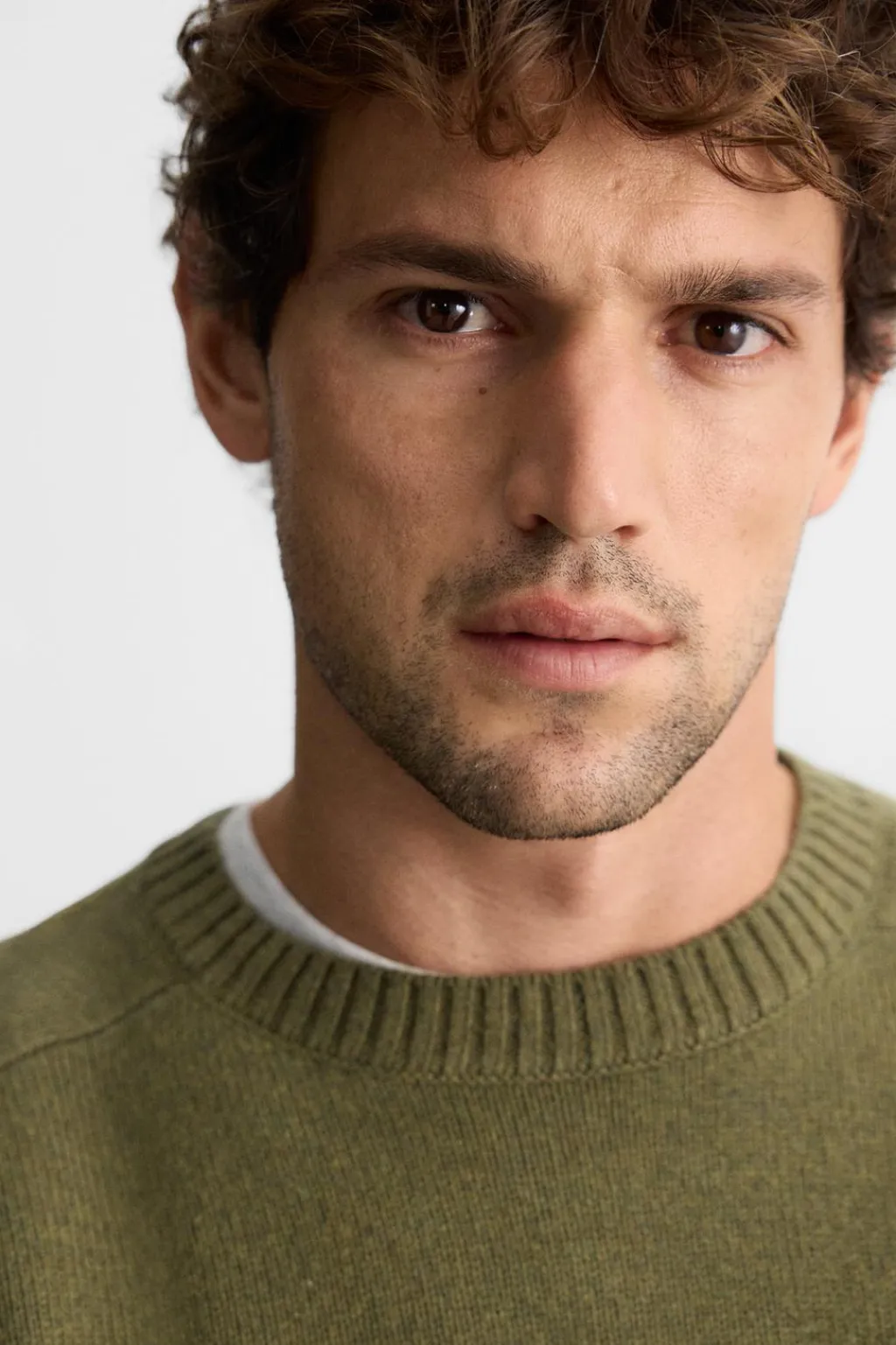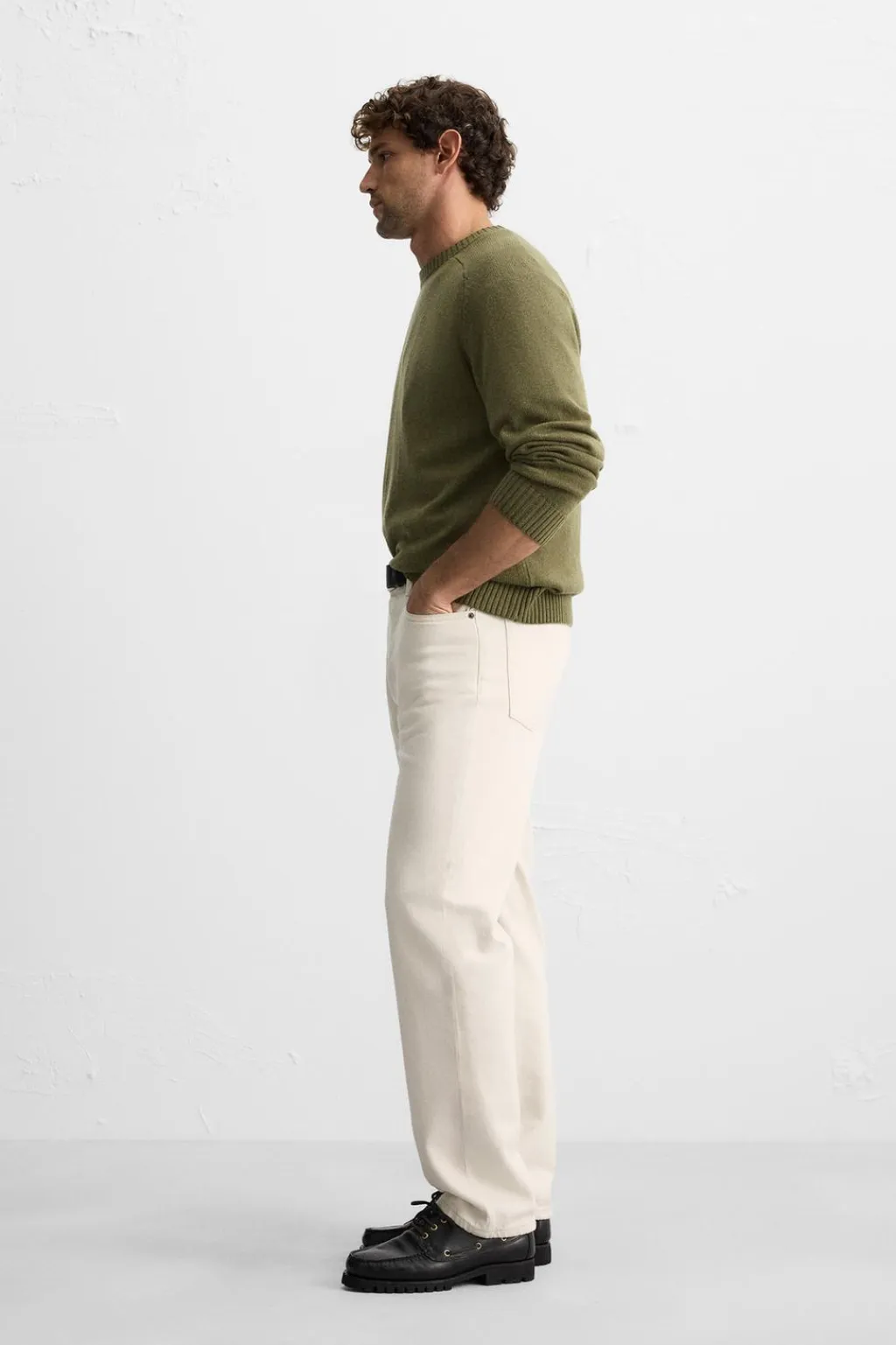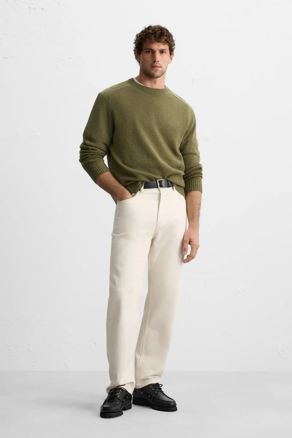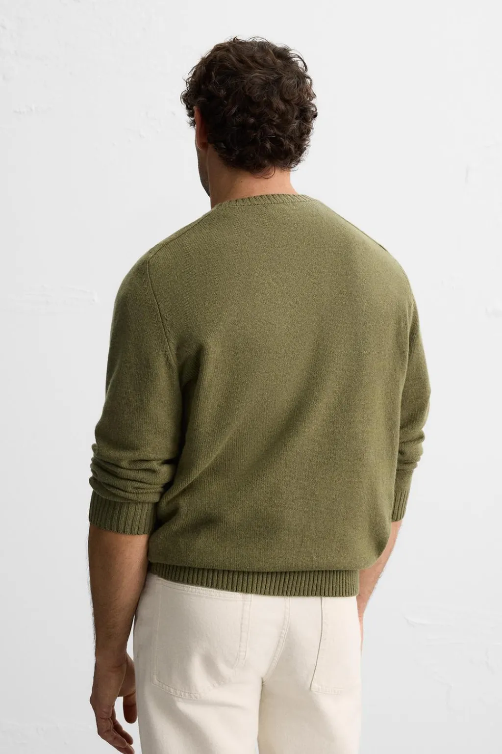 Jersey relaxed fit tejido en hilatura con lana. Cuello redondo y manga larga. Acabados en rib.