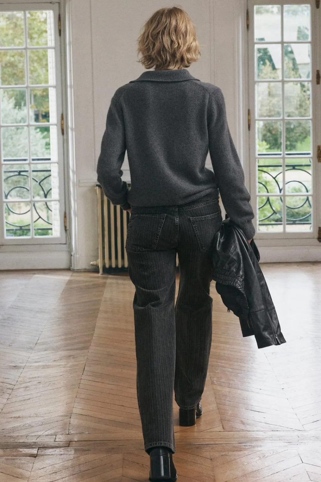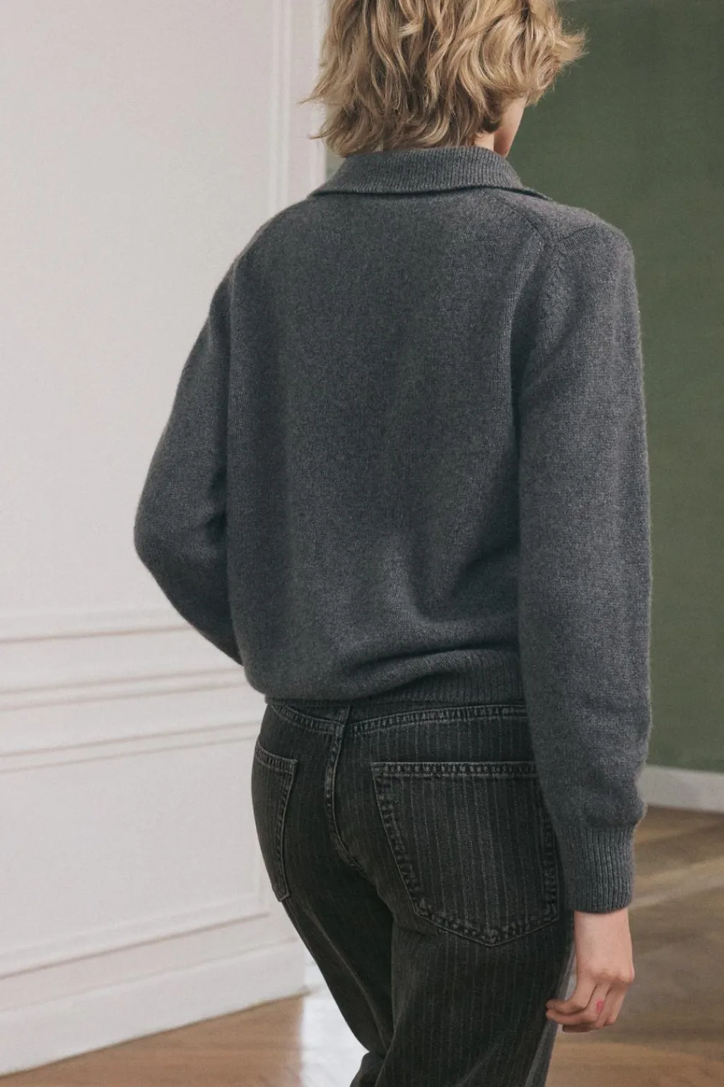 Jersey confeccionado en cashmere. Cuello polo y manga larga. Botones delanteros.