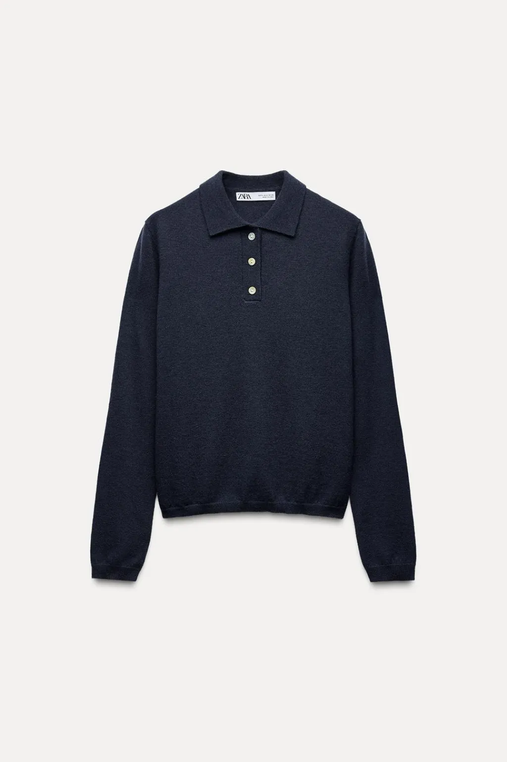 Jersey polo confeccionado en 100% lana. Cuello solapa y manga larga. Botones delanteros.